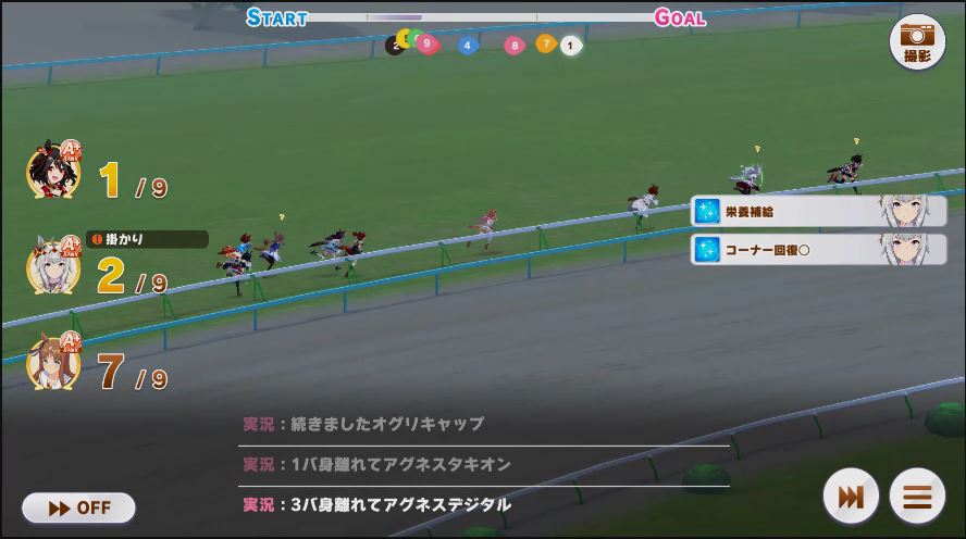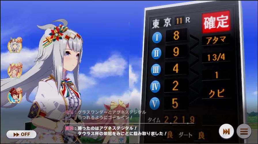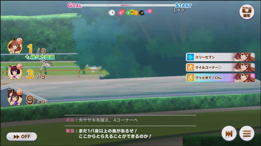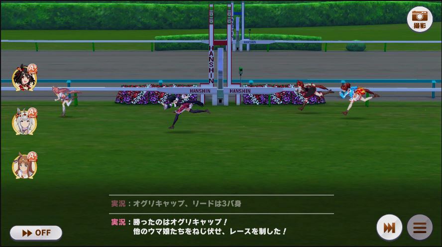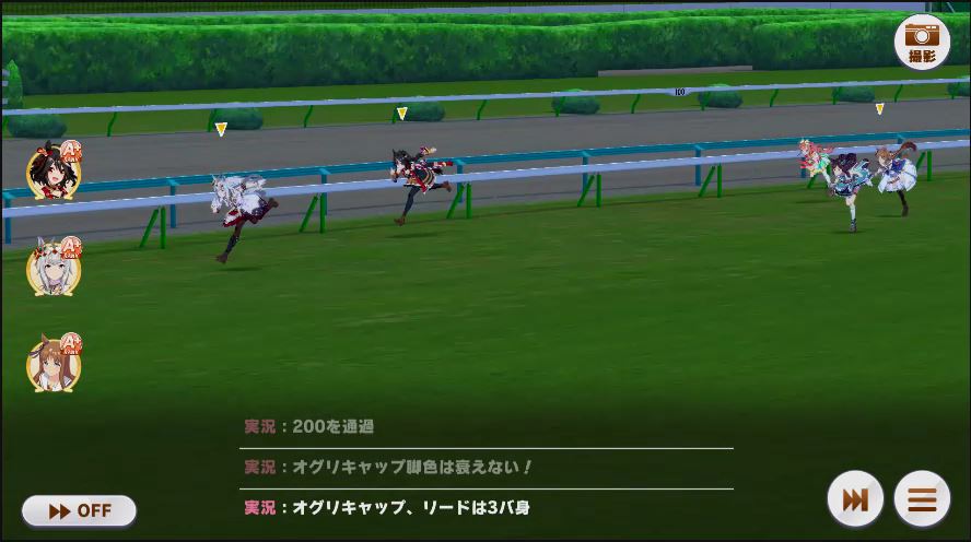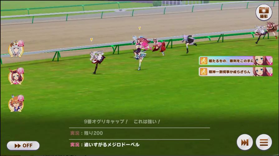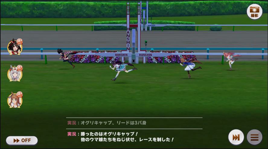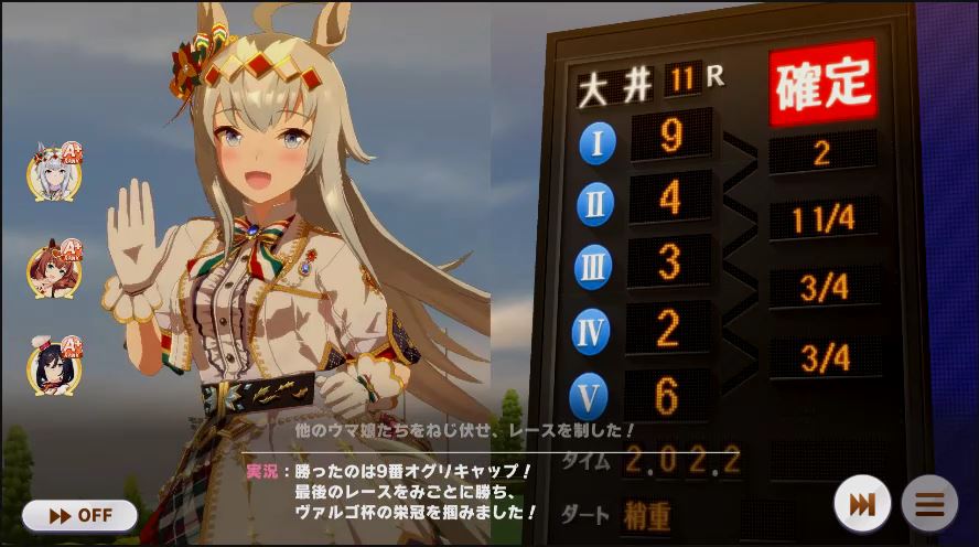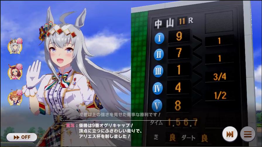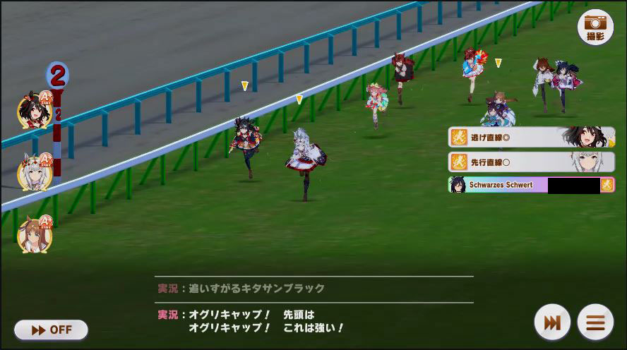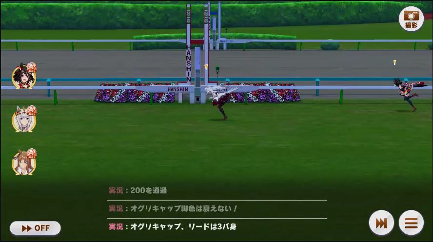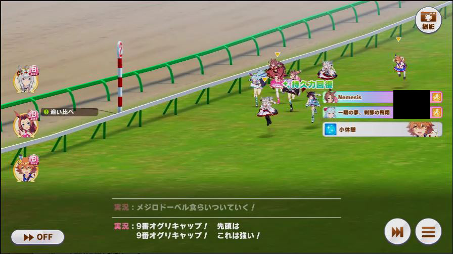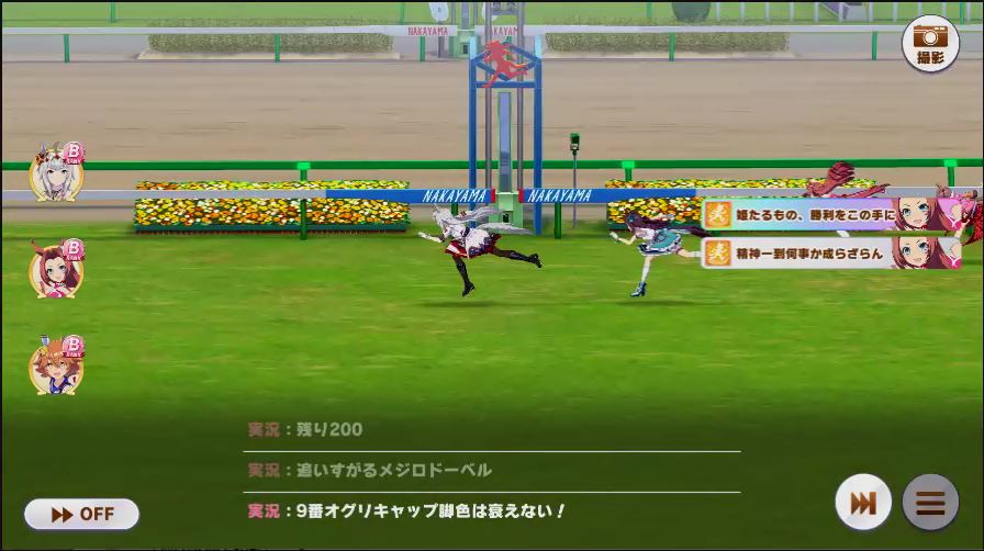 その後、中盤は大きな変化が無く相手のクリスマスオグリが回復スキルを発動した辺りで
