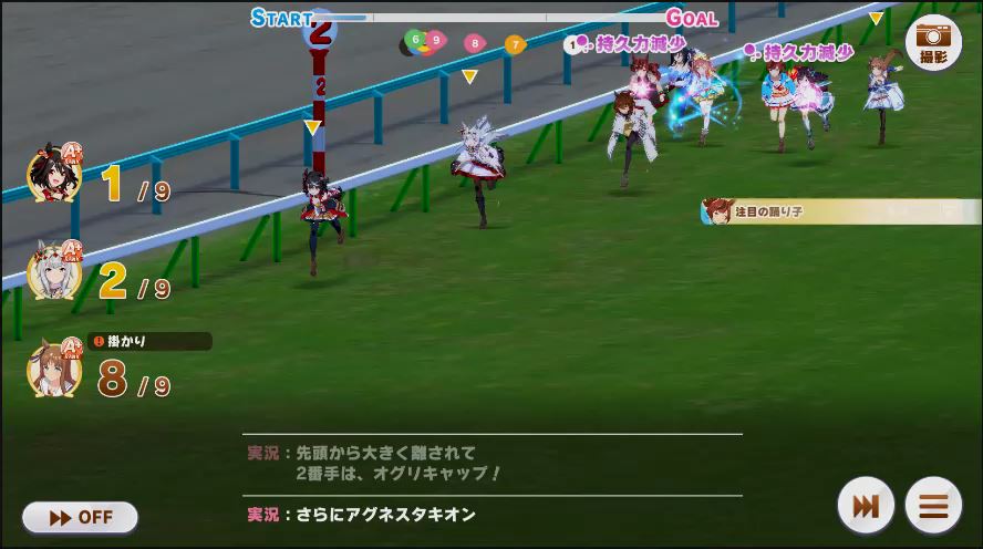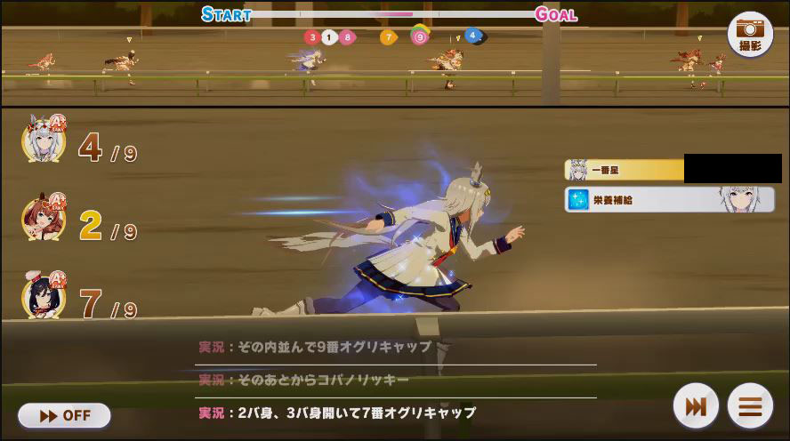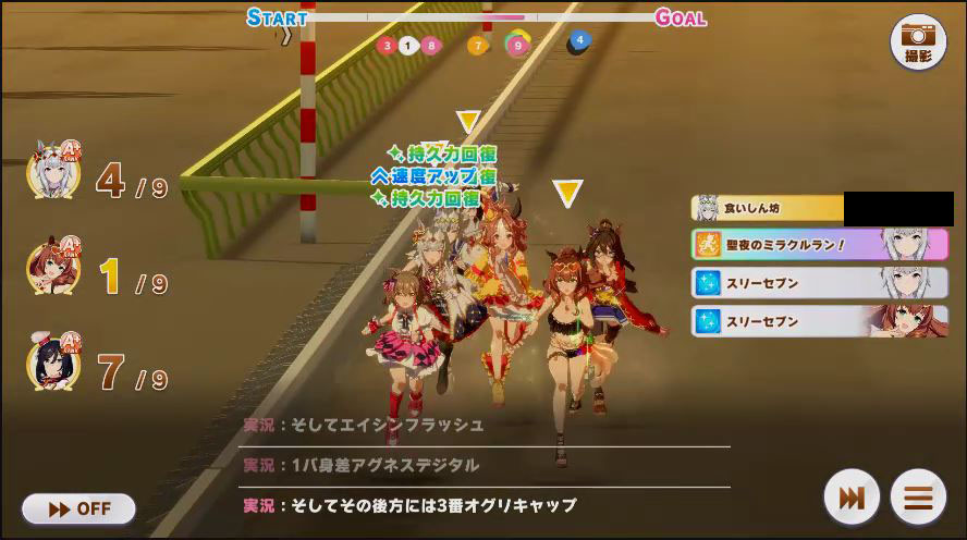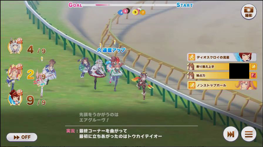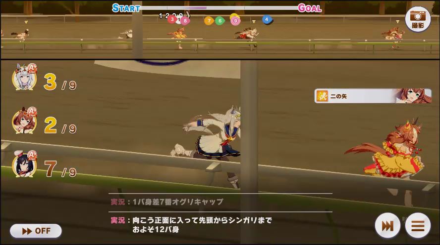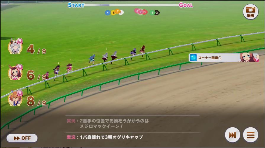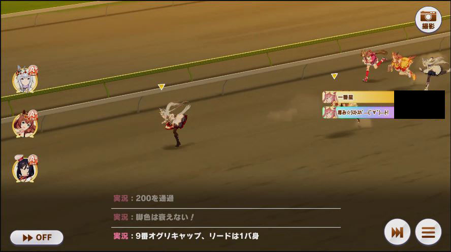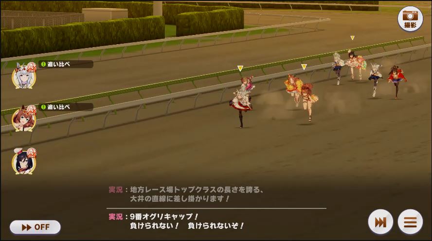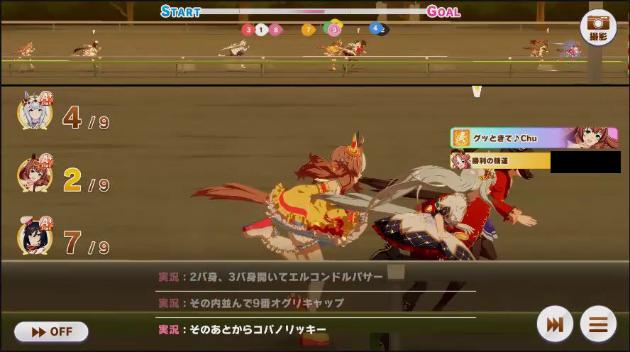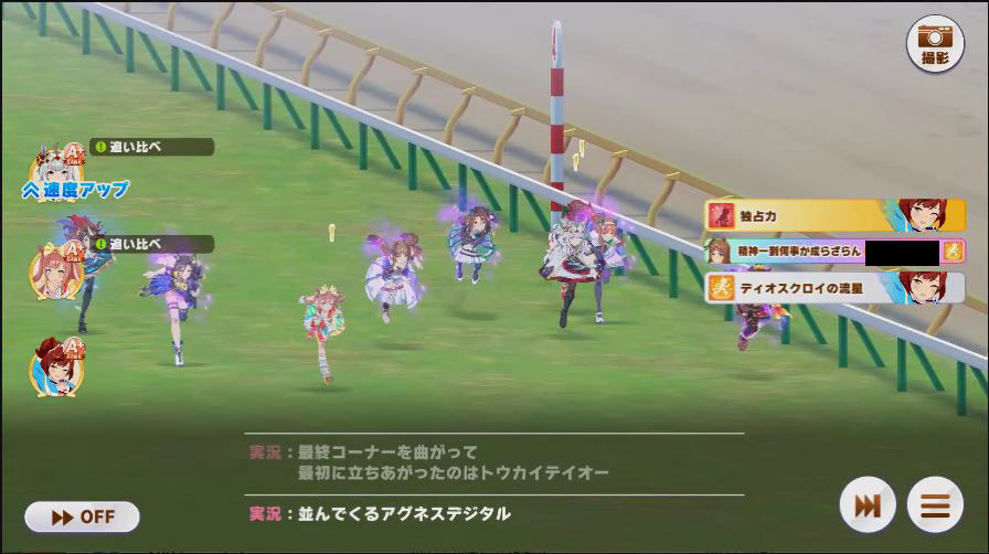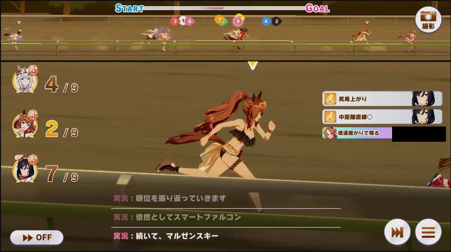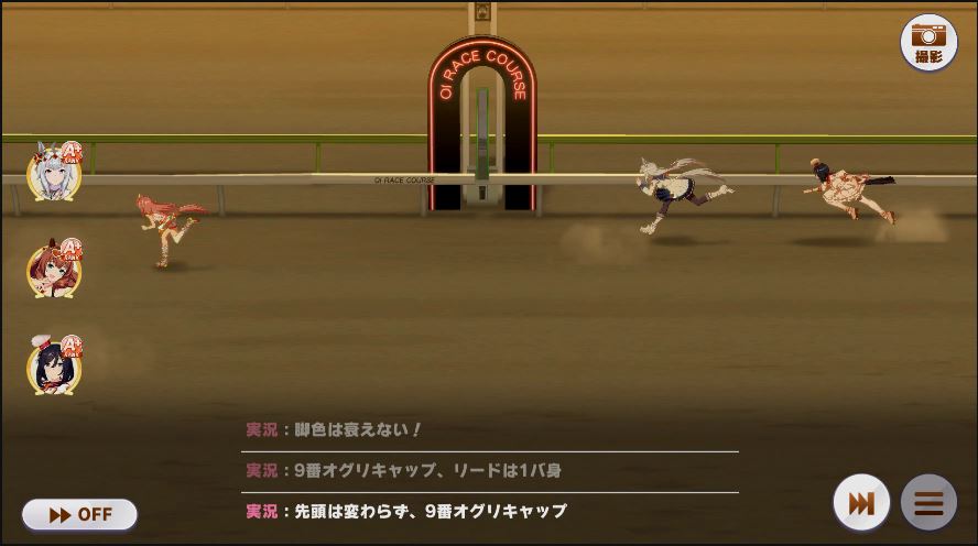 その後、中盤は大きな変化が無く相手のクリスマスオグリが回復スキルを発動した辺りで
