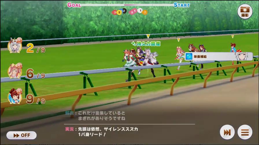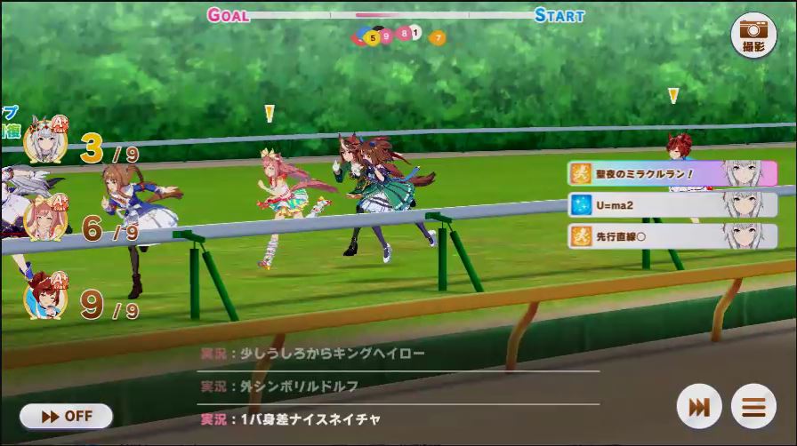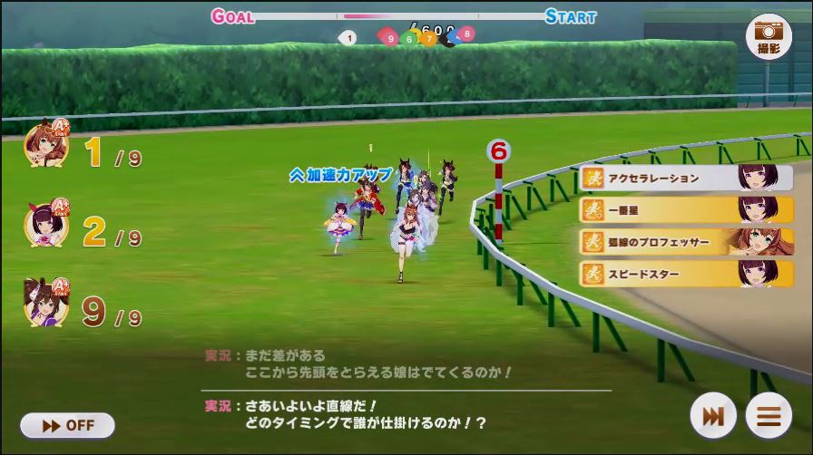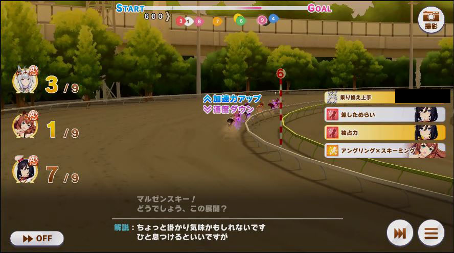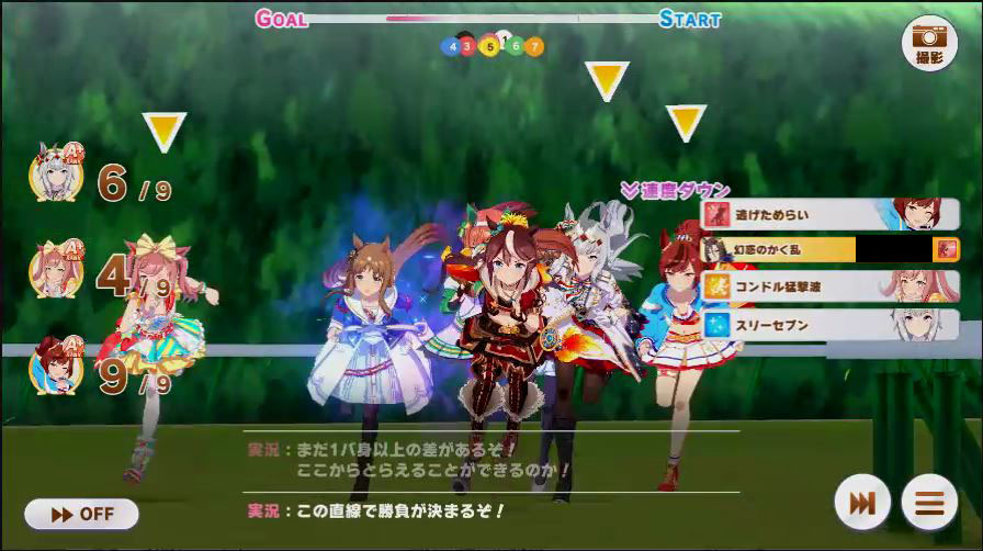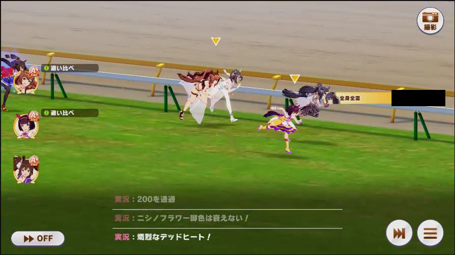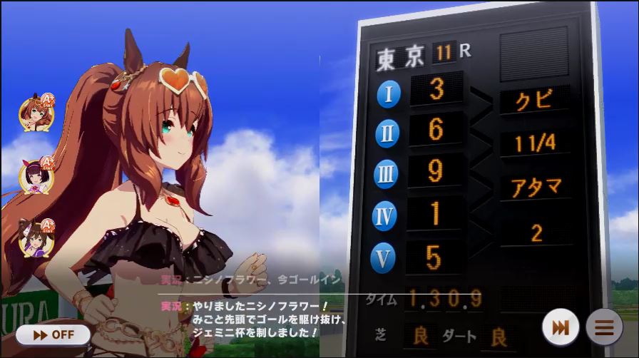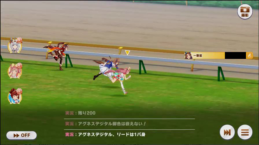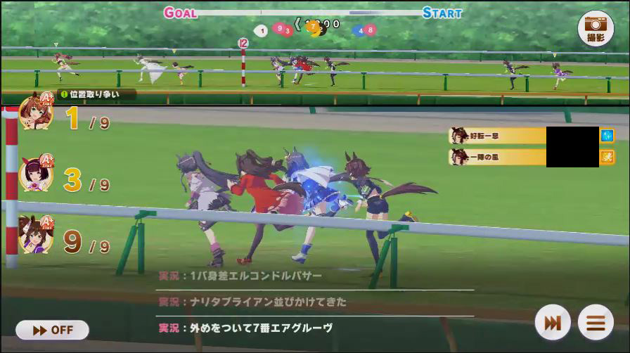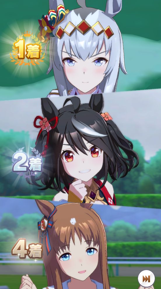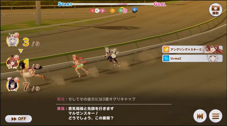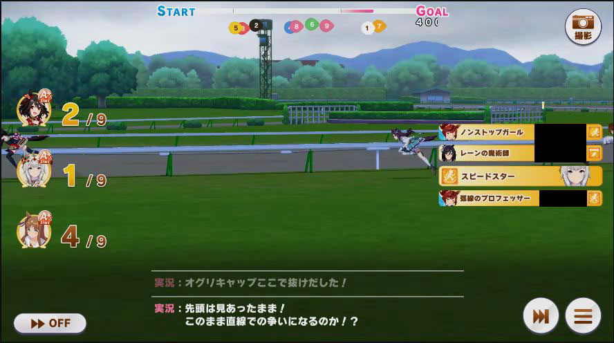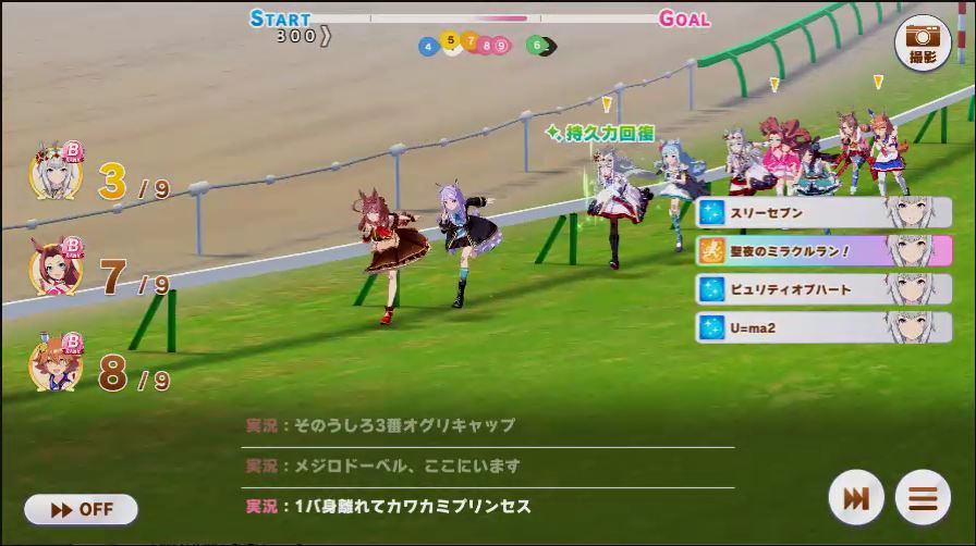 その後、中盤は大きな変化が無く相手のクリスマスオグリが回復スキルを発動した辺りで