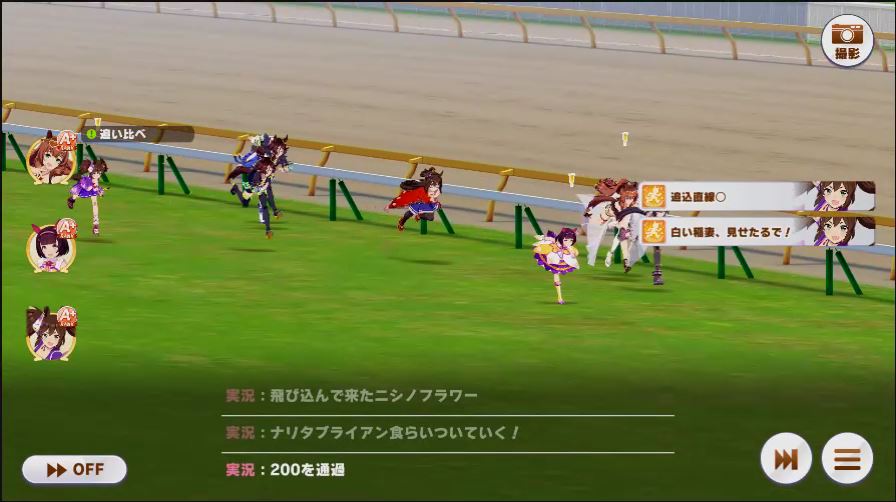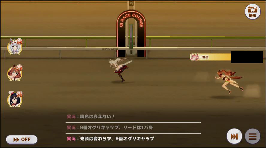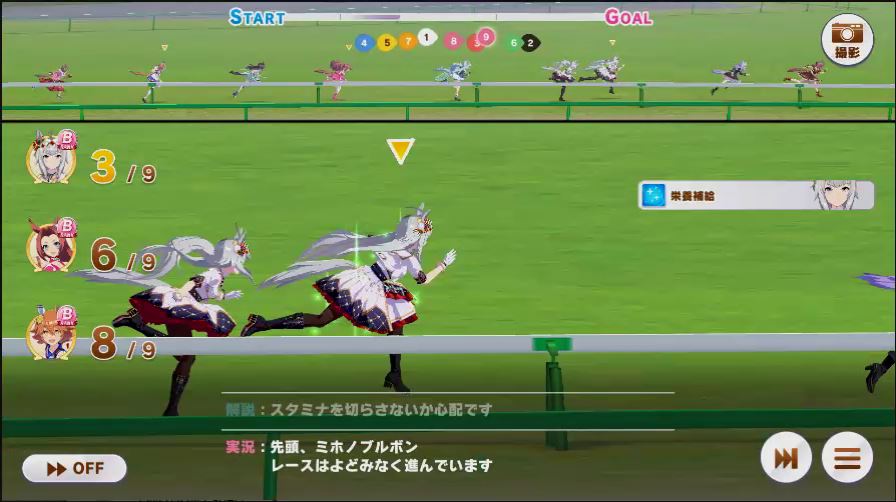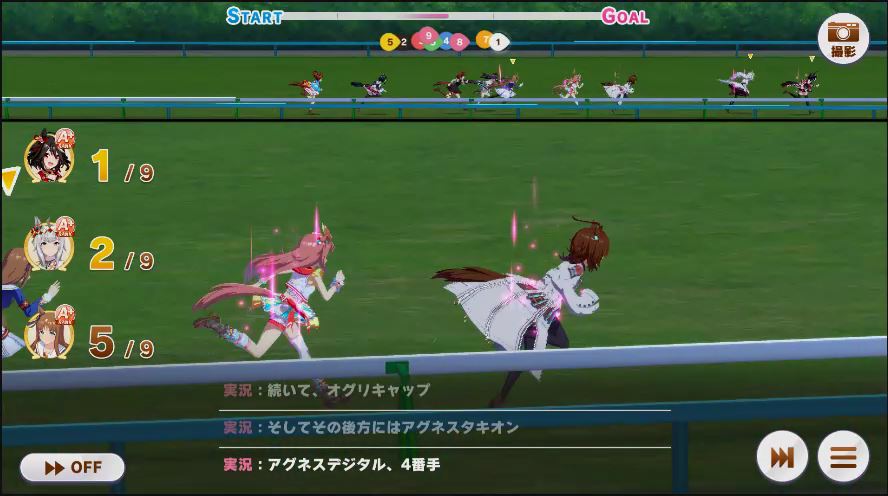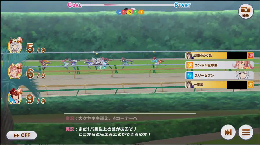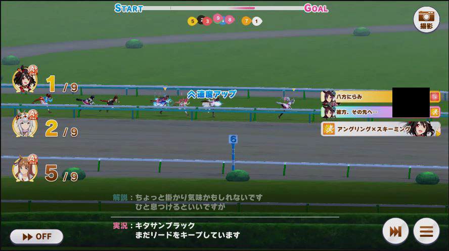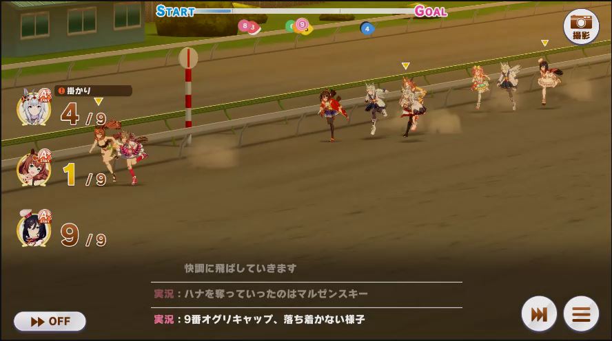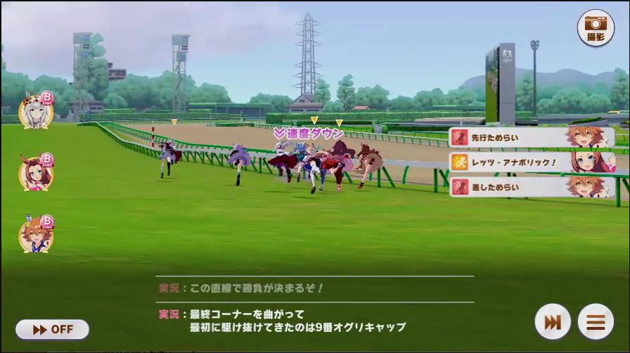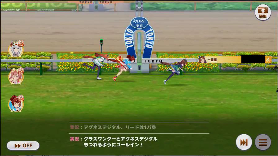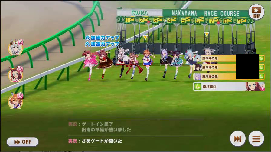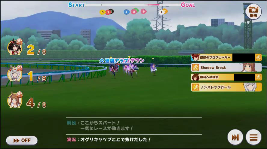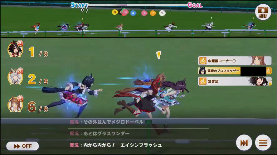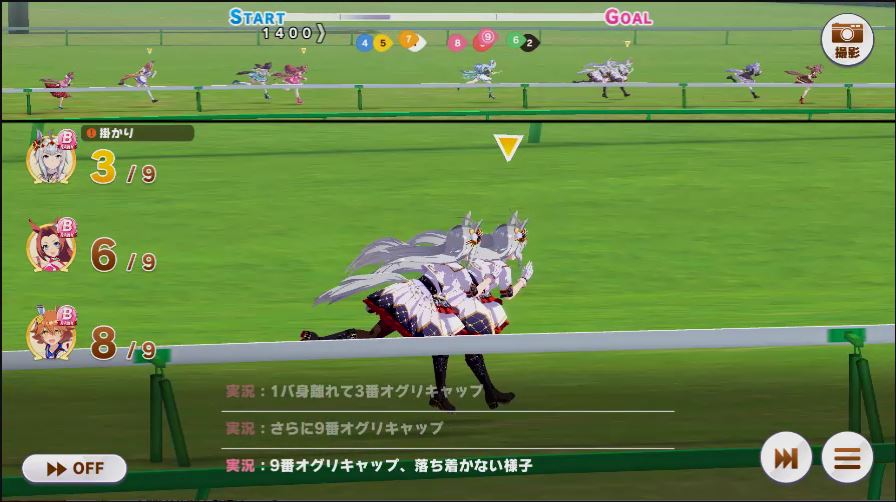 その後、中盤は大きな変化が無く相手のクリスマスオグリが回復スキルを発動した辺りで