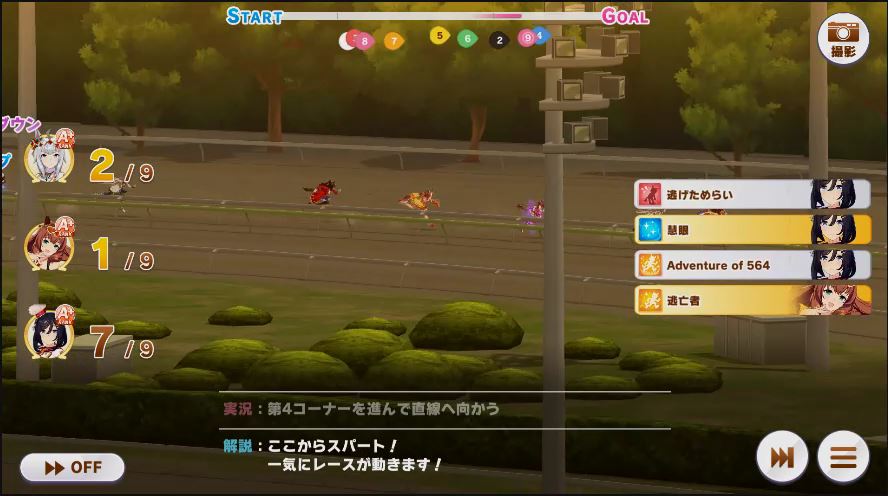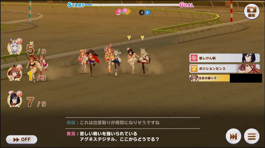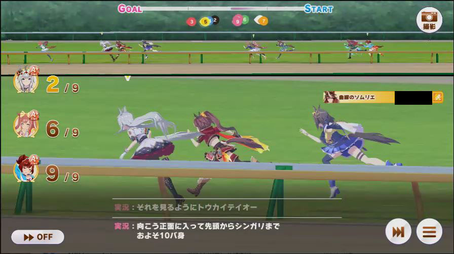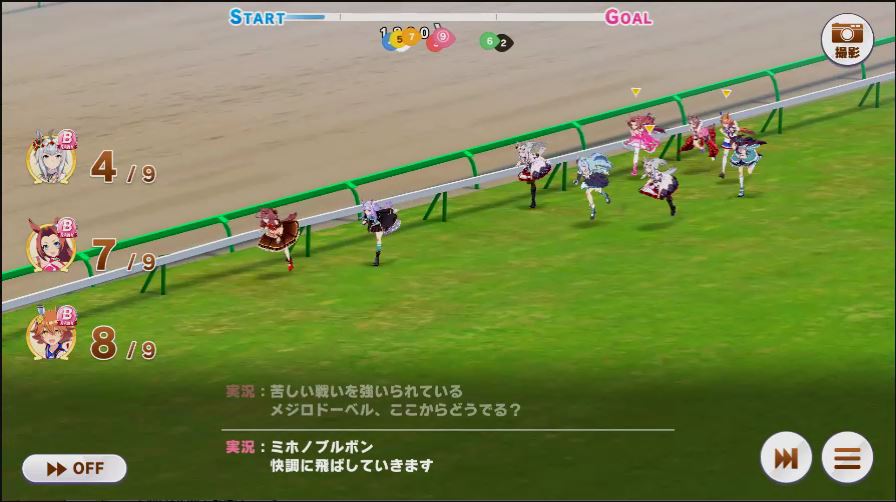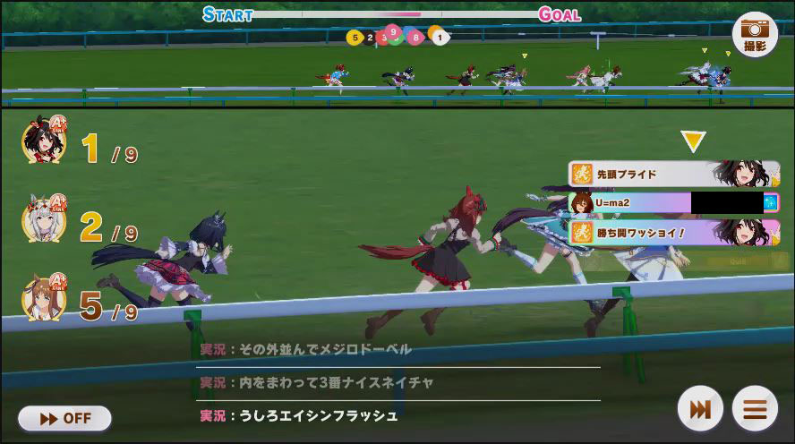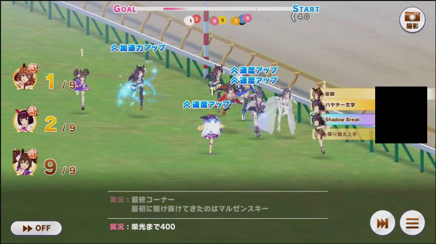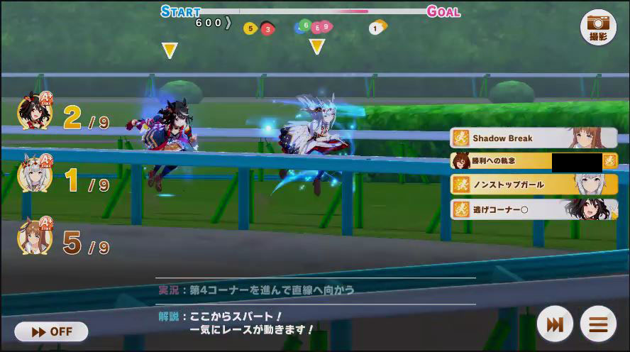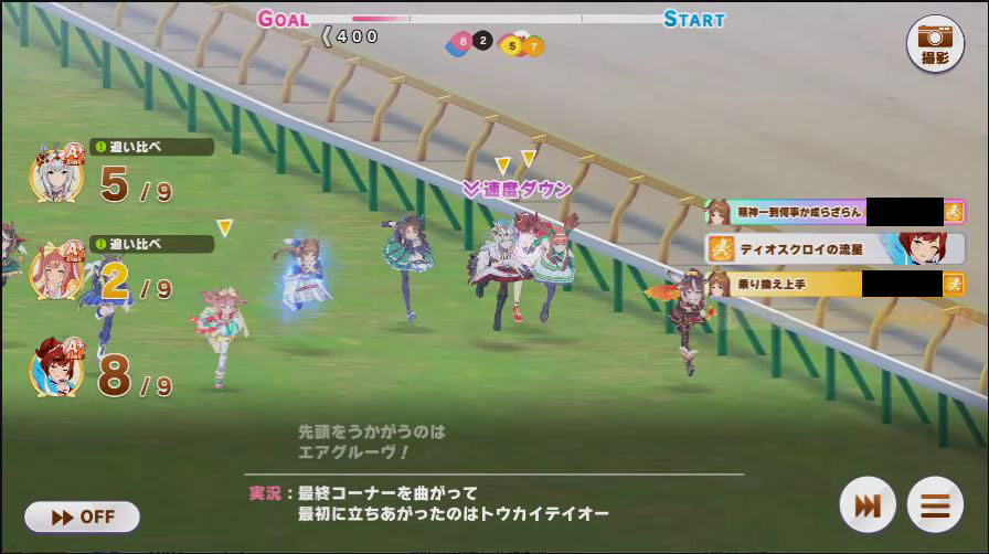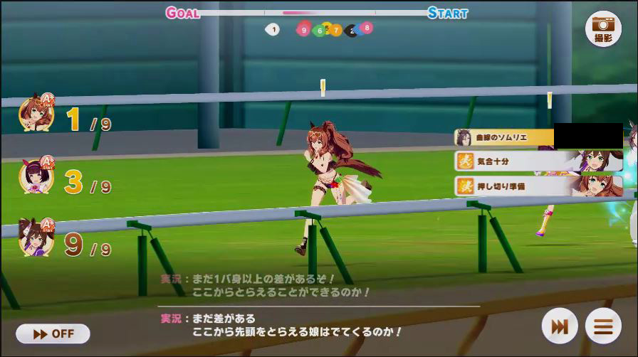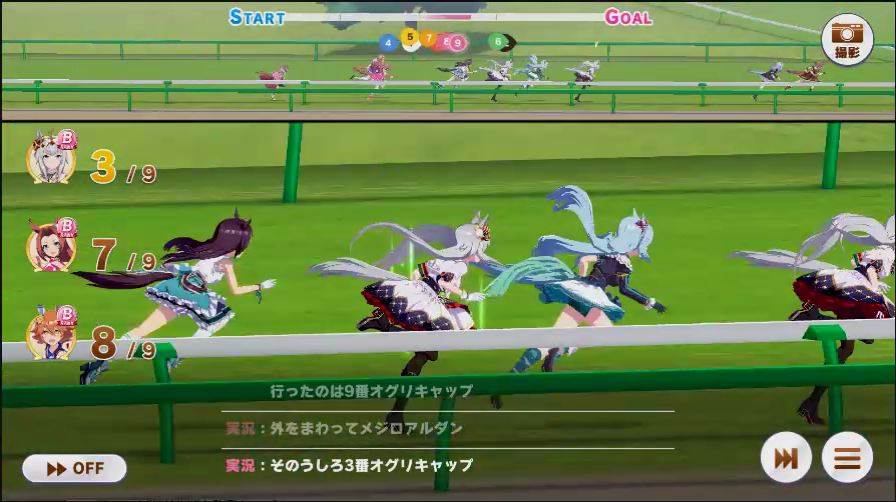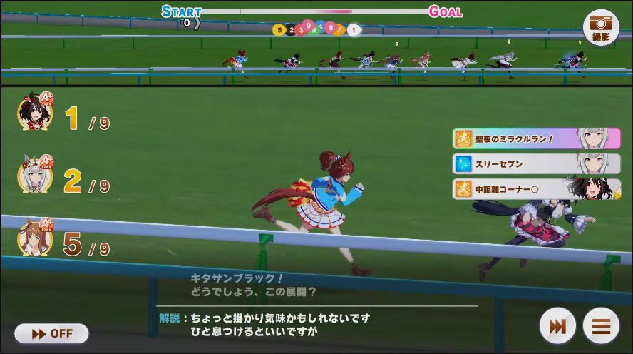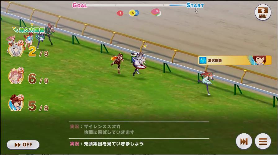 その後、中盤は大きな変化が無く相手のクリスマスオグリが回復スキルを発動した辺りで