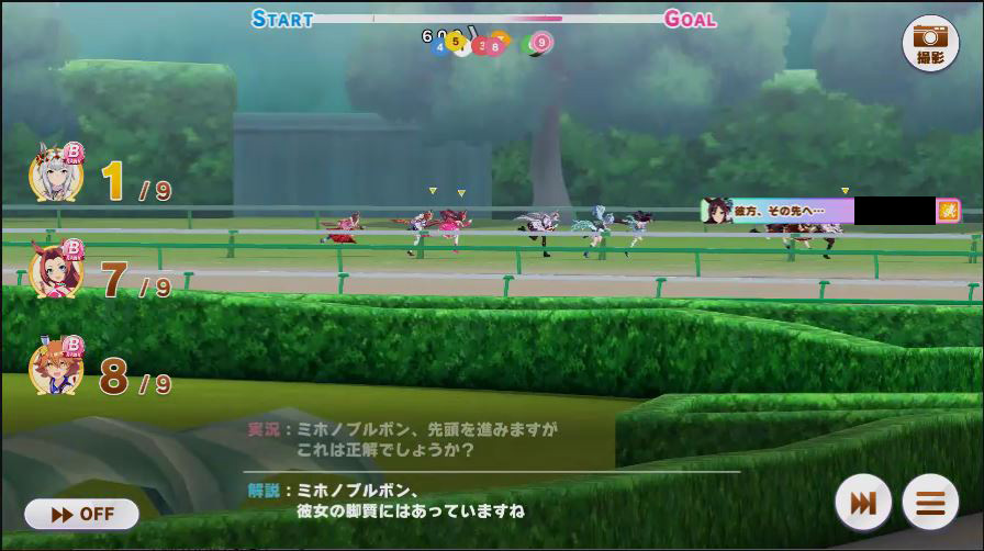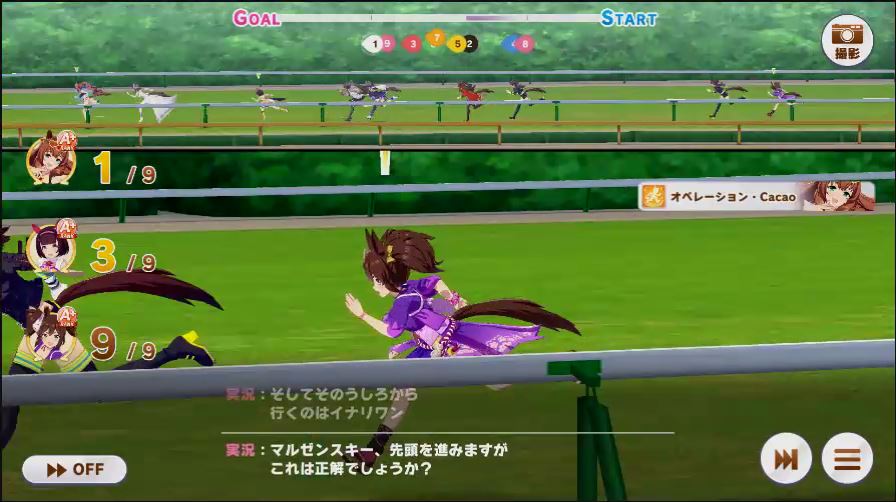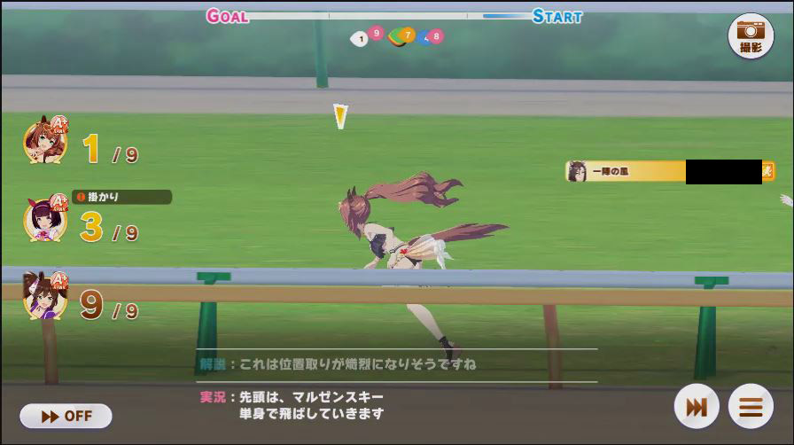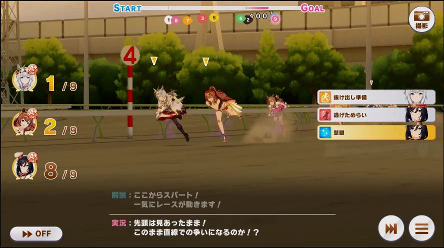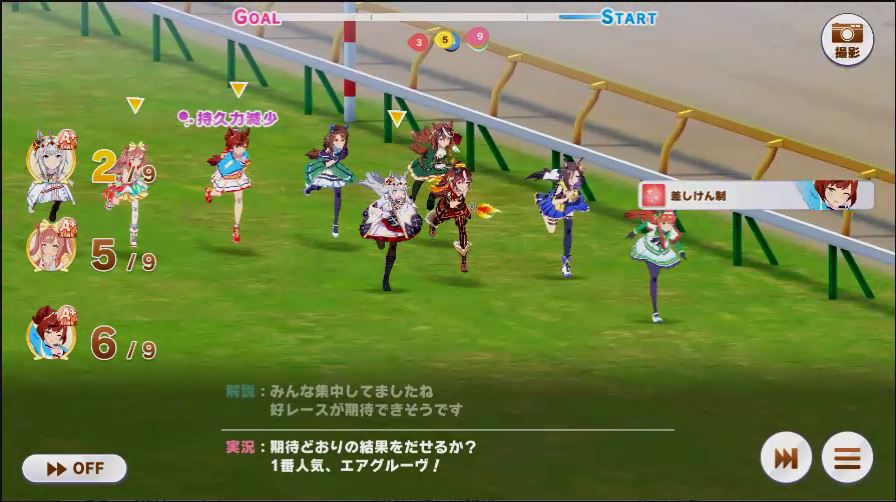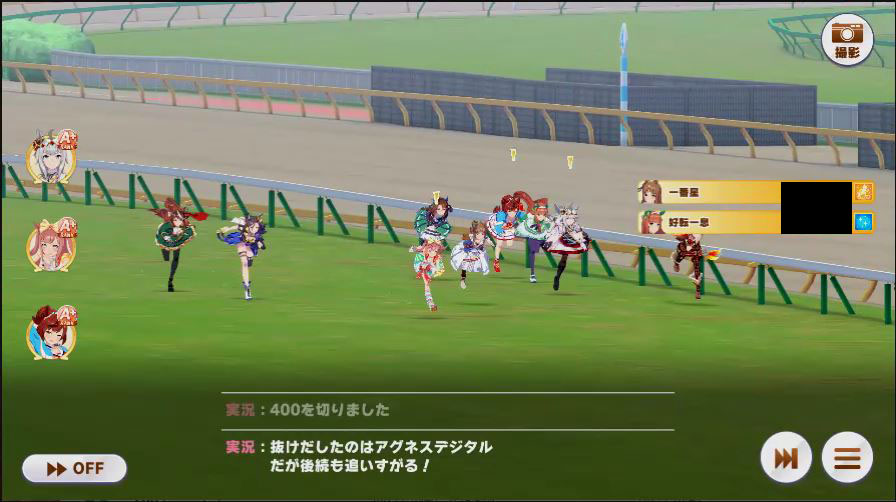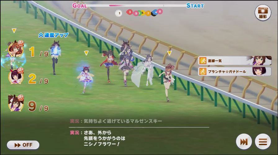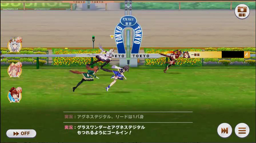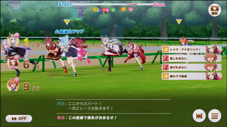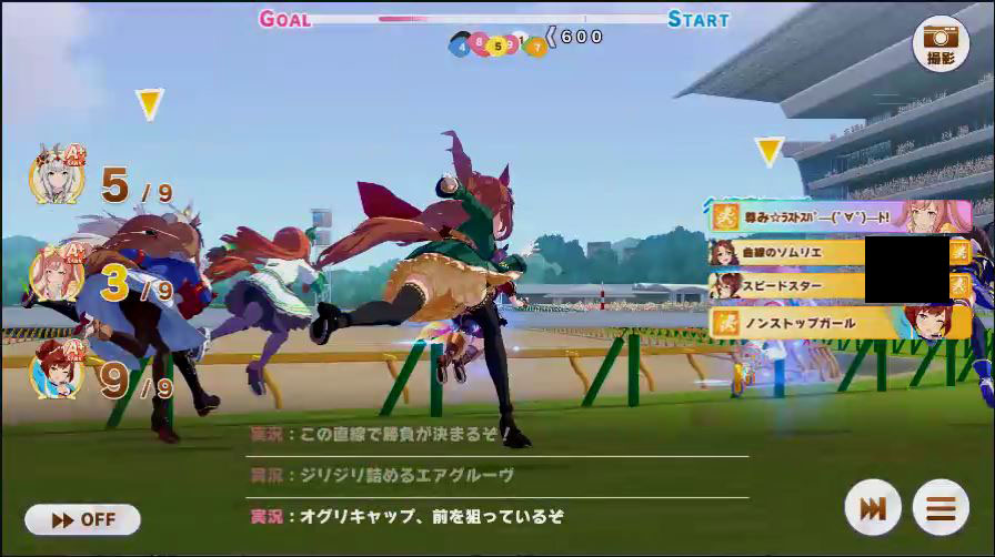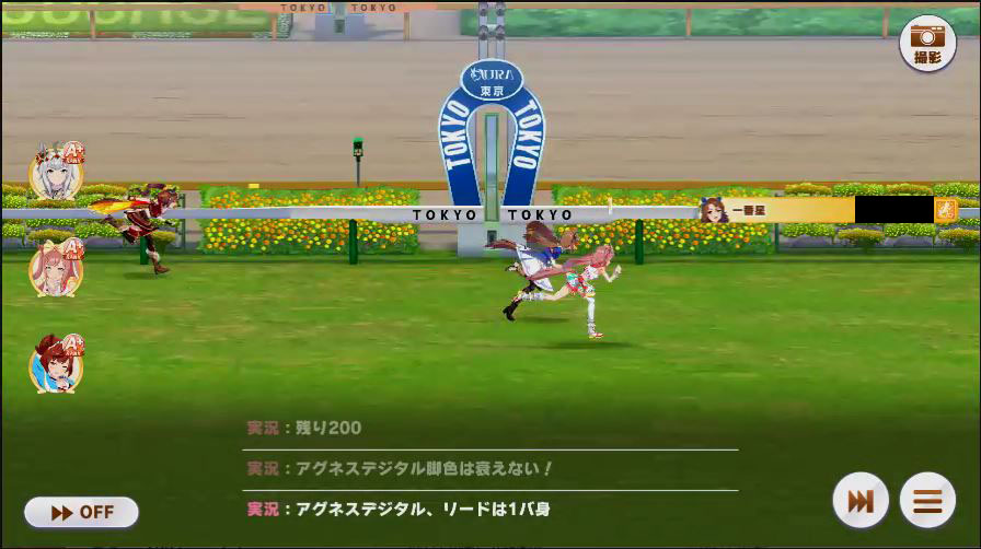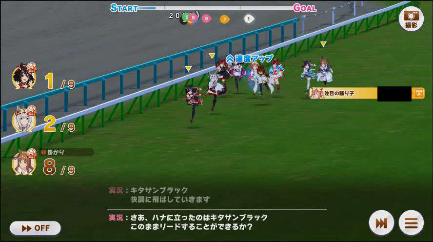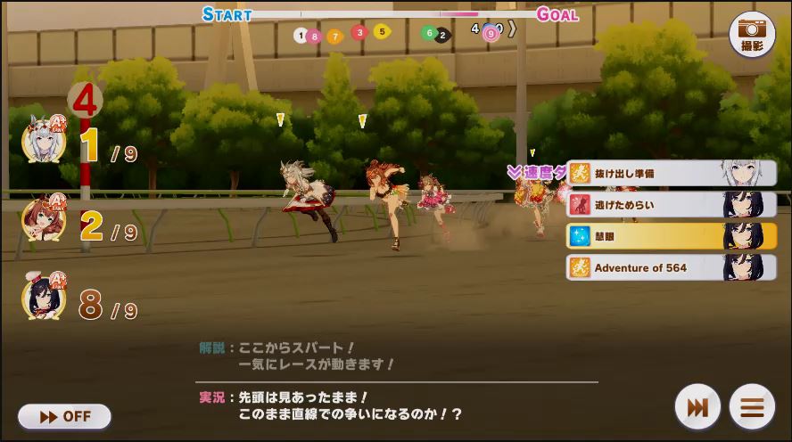 その後、中盤は大きな変化が無く相手のクリスマスオグリが回復スキルを発動した辺りで