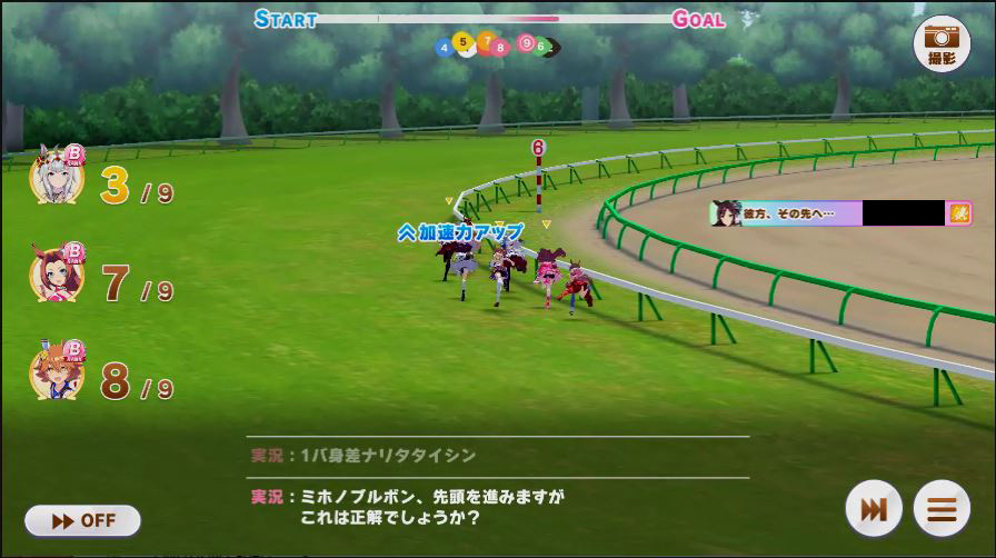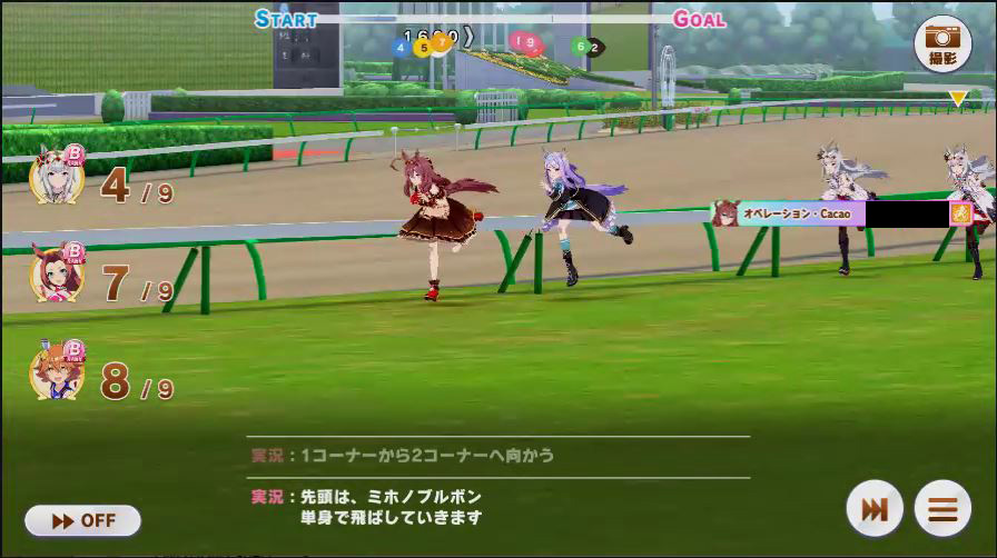 1コーナーに入ったタイミングでチョコボンが固有スキル発動。