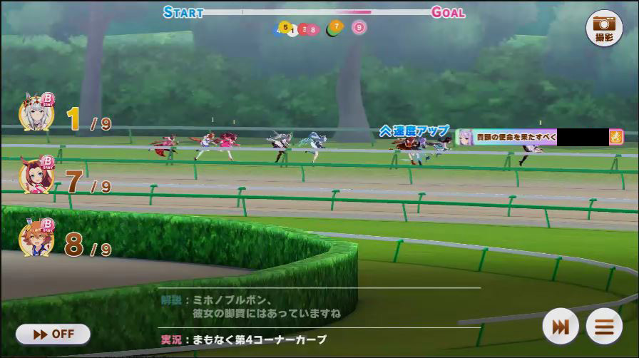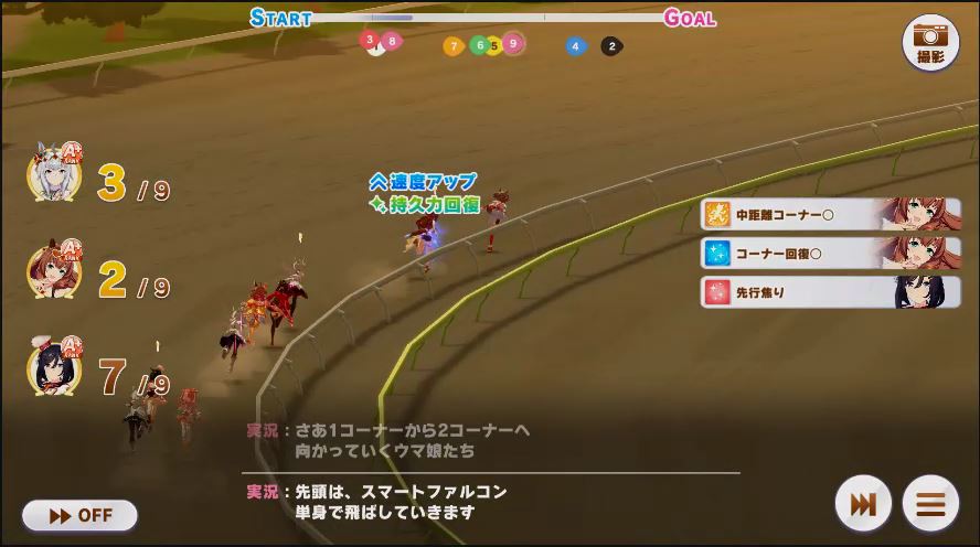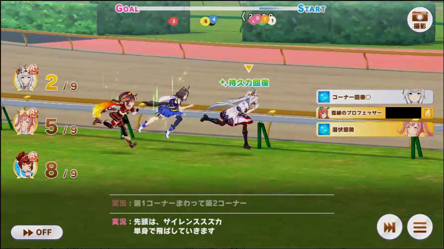 コーナーではカワカミのみコーナー回復発動。