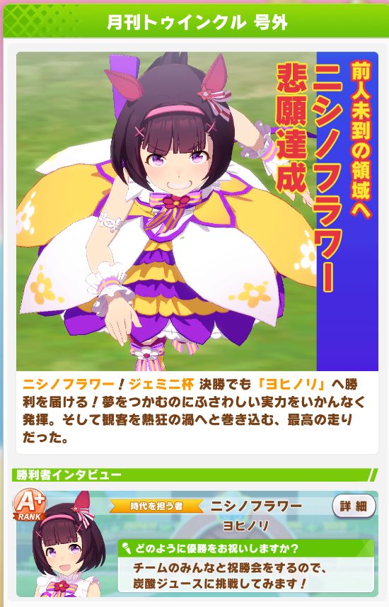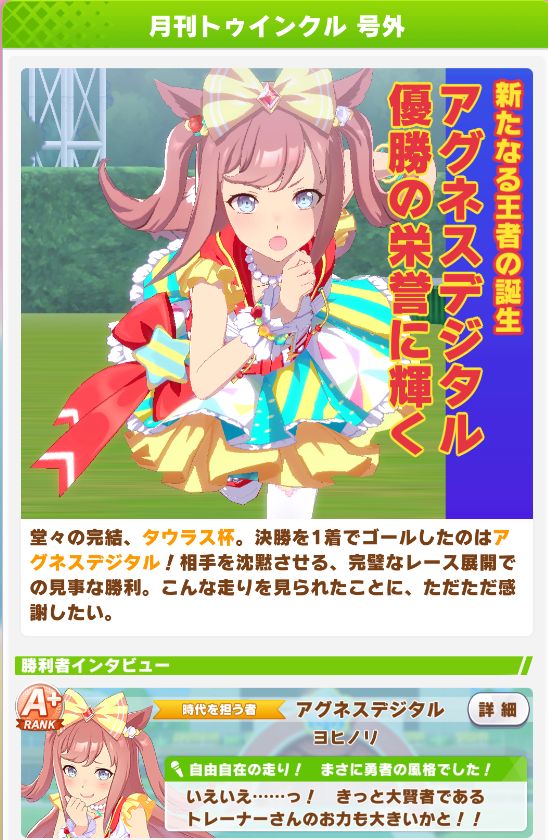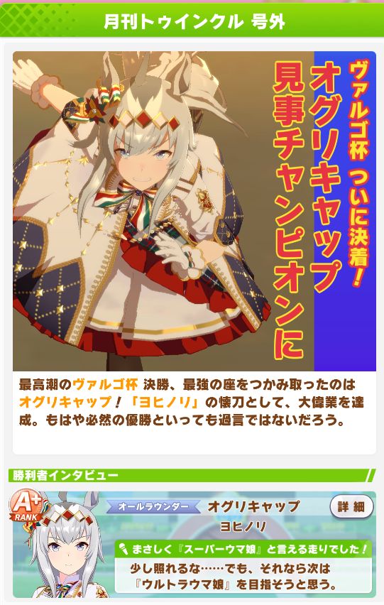 前回からスタートした、レース後に勝者だけが見れる号外を、1月遅れで見ることが出来ました。