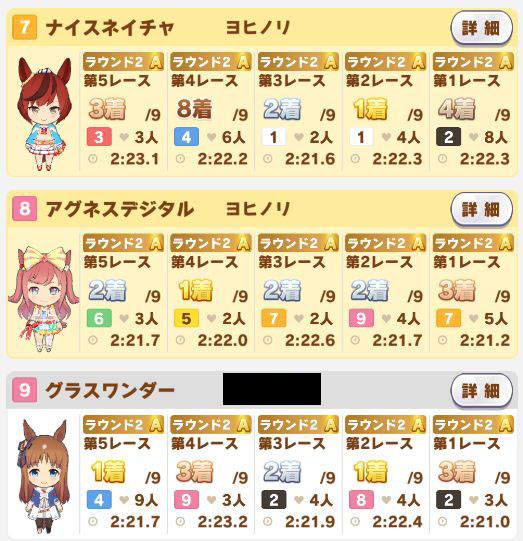 ところが最初育成したら、スピードが足らず(今回は901以上でボーナス)