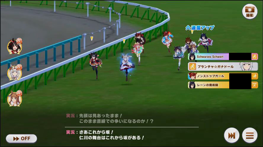 相手のリッキーが固有を発動して先行勢のポジションを上げていく。