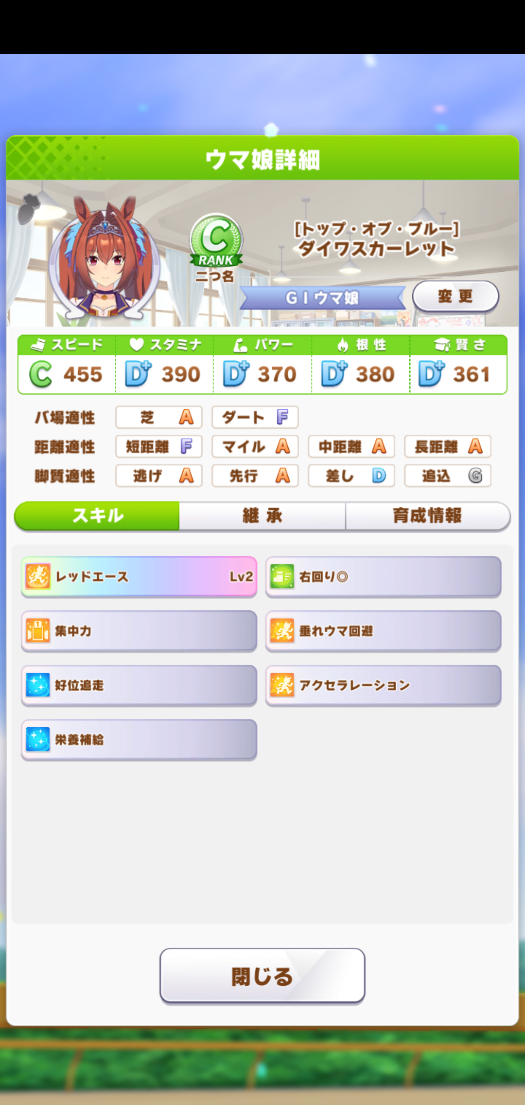 とはいえダービーをスキル発動無しで勝てたのは意外でした