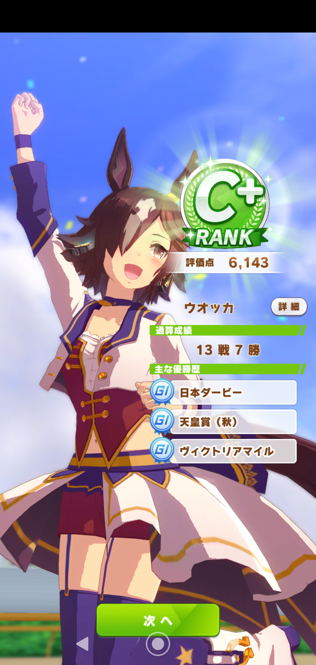 1着条件が最後の天皇賞秋だけのおかげか上手いこと勝てて初めて育成達成