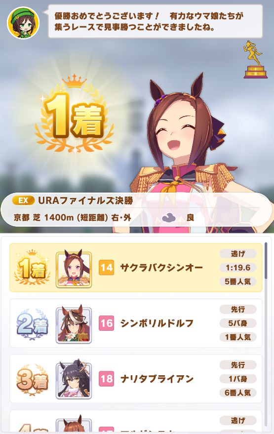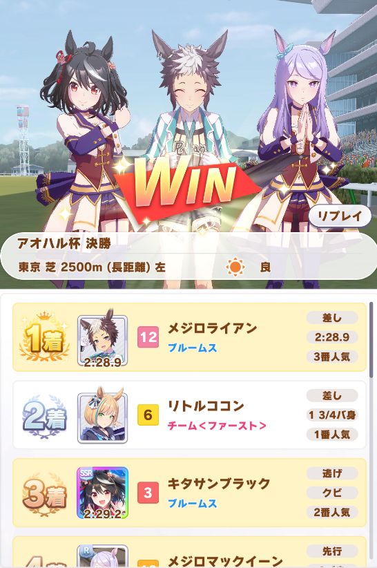 アオハル杯決勝はルドルフのデバフが上手く昨日して表彰台独占からの優勝。