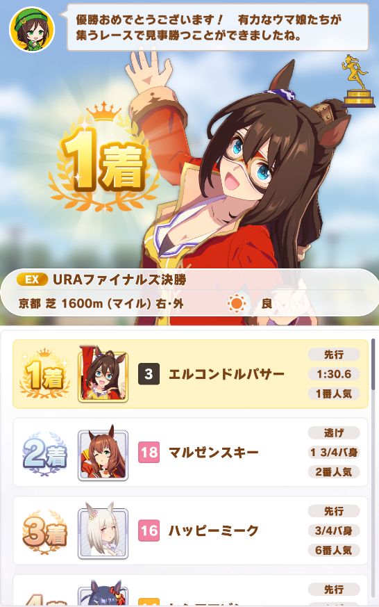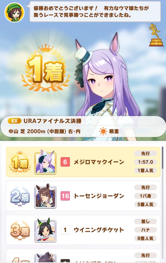 ウインディちゃんにも逃げてもらって引き離して無事勝利からの優勝。