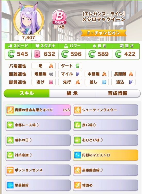 個人的にはそれよりも、同じ方の2着に入ったタイシンが理想的ステータスで