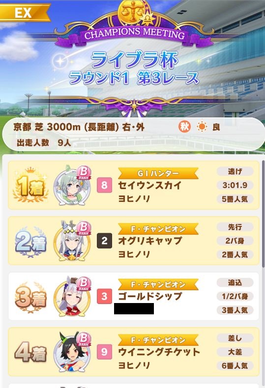他二人も固有が発動したものの、ライアンはマエストロ不発で4着まで