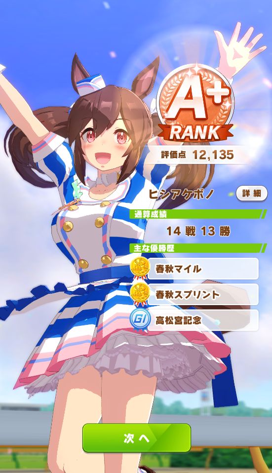 アオハル杯決勝、こんなステータスを目指してみたい。今回は短距離だけど。