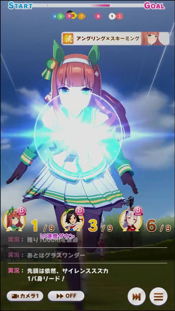 それと同時にスズカにデバフを受けた様子。セイちゃんが影響無しということで、セイちゃんのチームメイトのグラスが逃げ牽制を発動した模様。