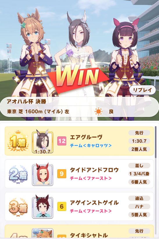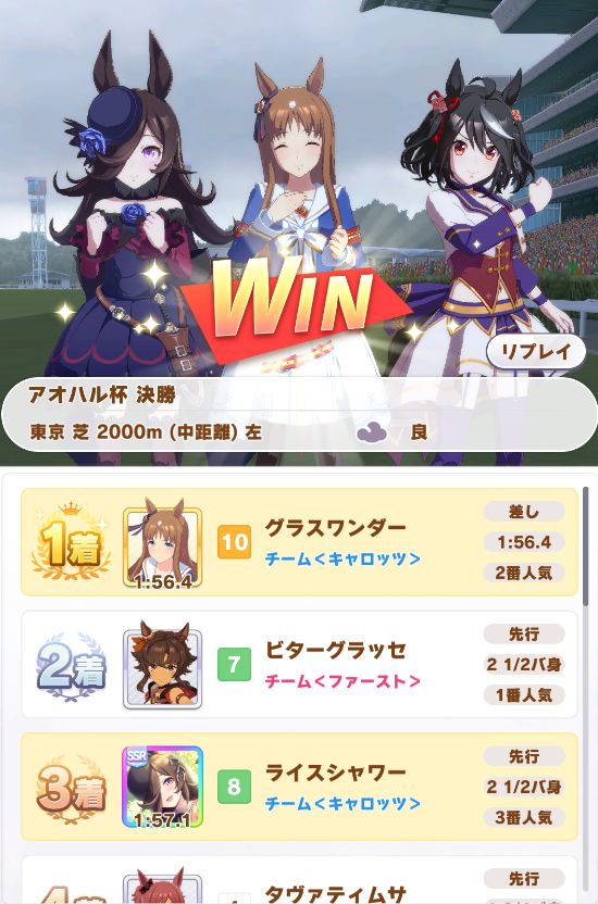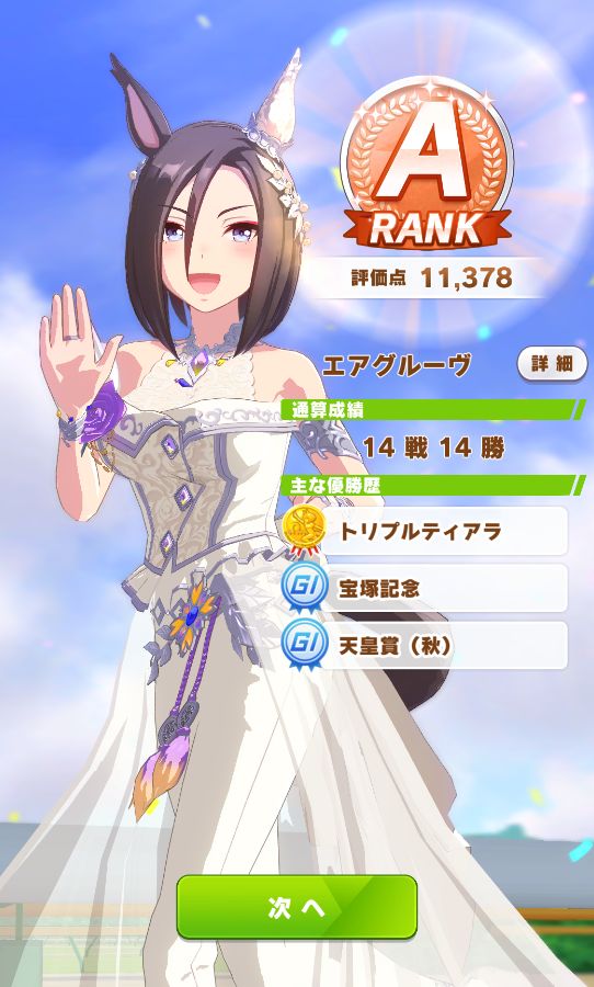 今回はレースの方は良い感じで勝てて、ティアラ路線のG1を無事全勝する。