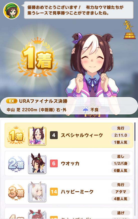 シニア級2月に曲線のソムリエ、3月にプロフェッサー、4月にマエストロでサポカイベントは無事完走