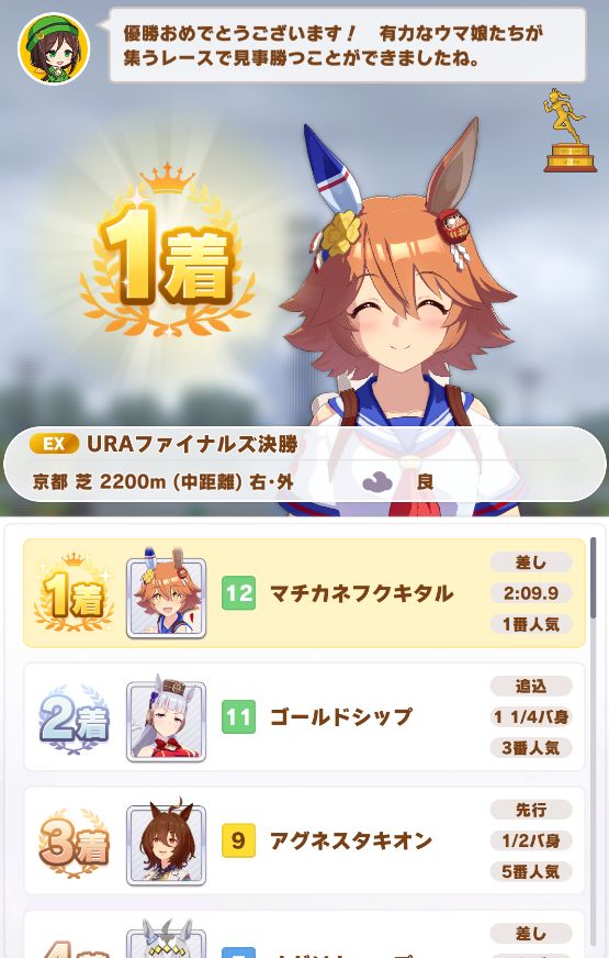 URAは接戦ながらノーコンクリア