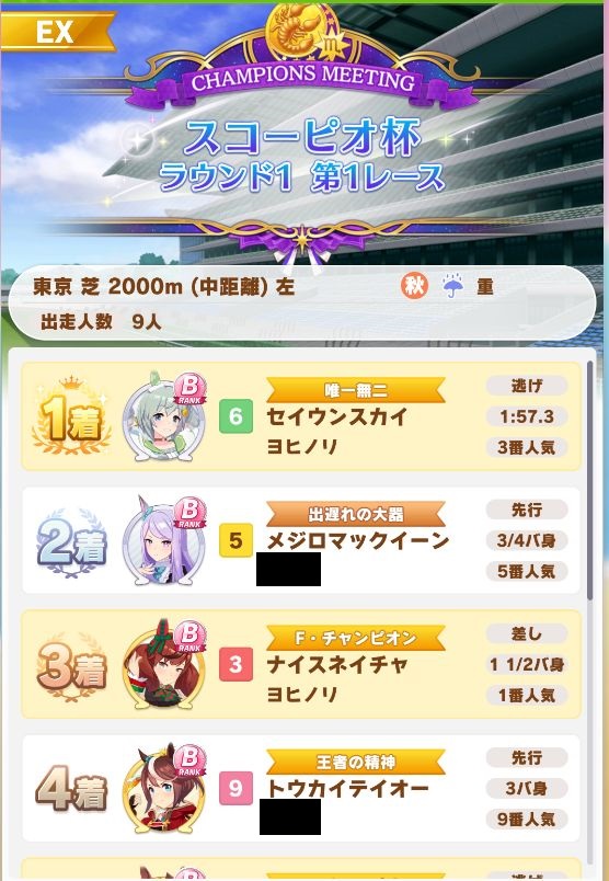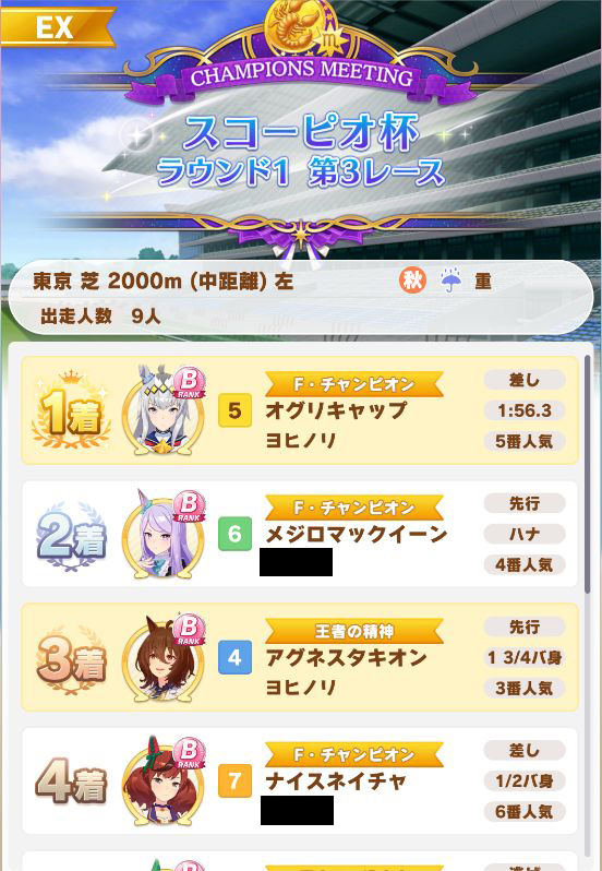 やっと回復出来て固有が出たオグリが勝利