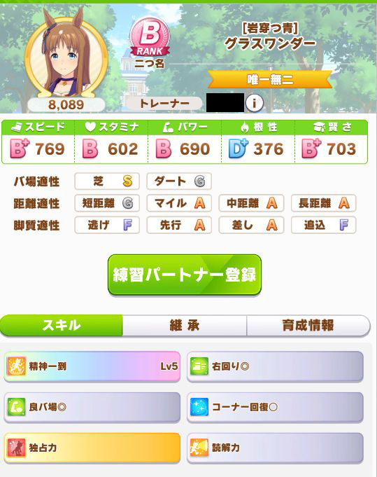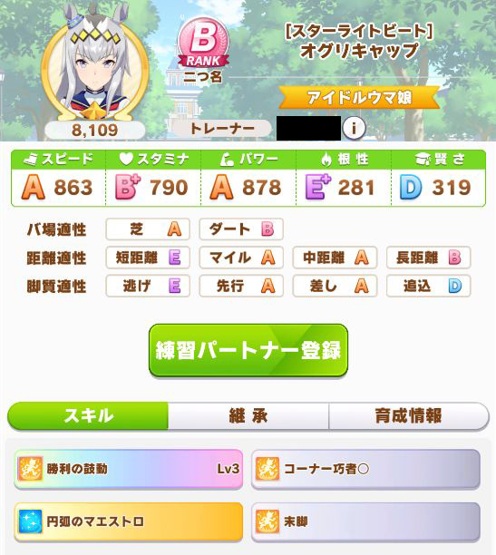 2着のオグリも整ったステータス
