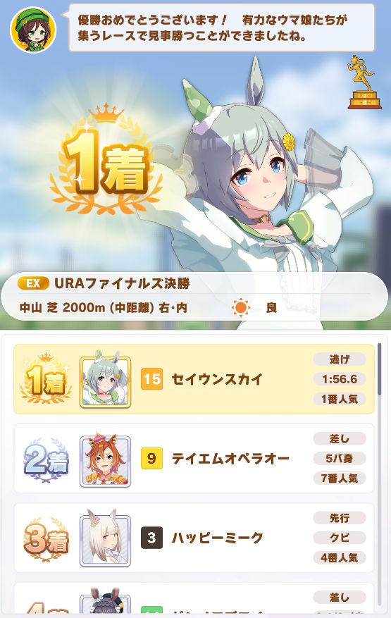 セイちゃんが内枠を生かして固有を発動したものの、2着まで
