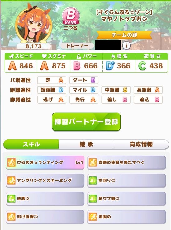 因子はSP7に、地固めの因子も付いてURA4と良い感じに。