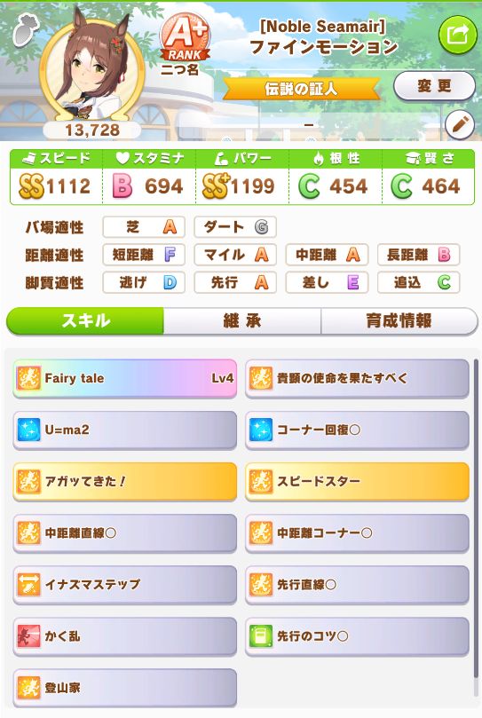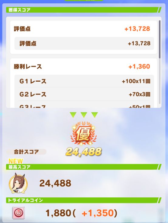 ステータスやスキルポイントは上振れて、評価点自己ベスト更新