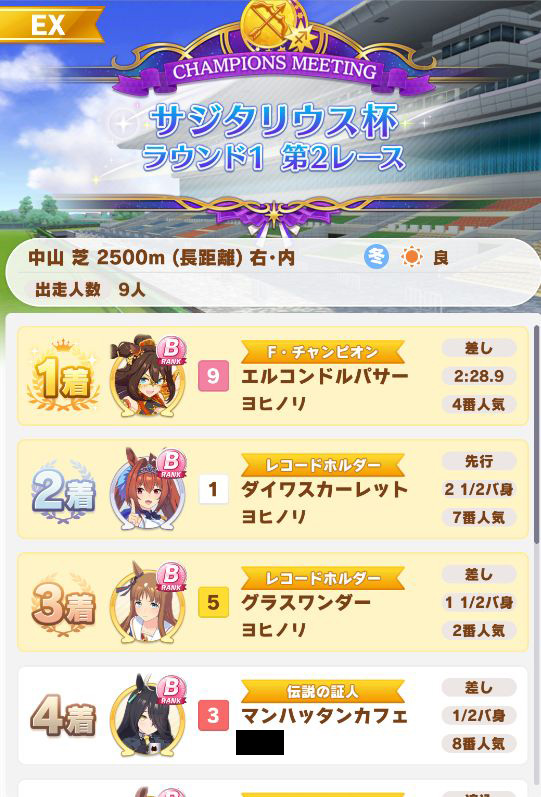 不調・出遅れながらデバフと固有を発動したグラスが勝利