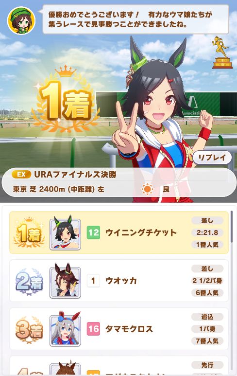 URAは中距離の長め距離だったこともあってストレートにノーコンクリア。
