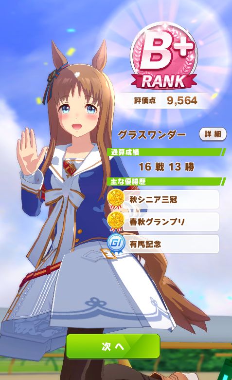 6人目(通算95人目)は☆3になったネイチャ(4度目)