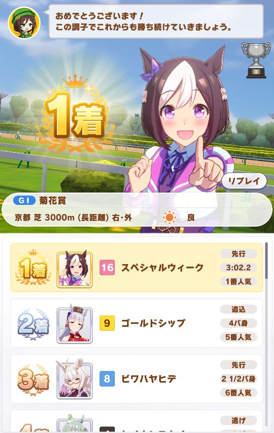 年末からシニア級にかけて、ゴルシと同じく長距離レースを走っていく展開。