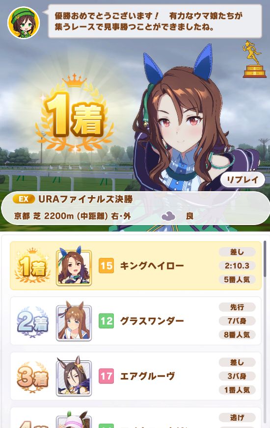 URAは中距離で、マイルより余裕があるのかノーコンクリア。