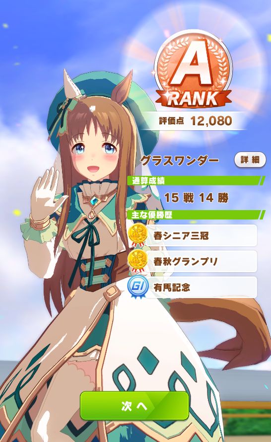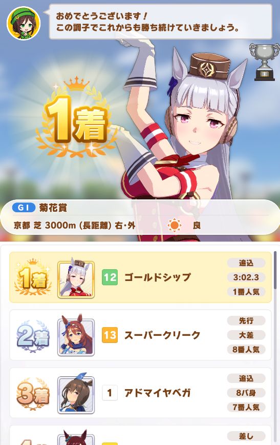 とはいえアオハル杯決勝の方は、セイちゃん自ら逃げ粘って勝利からの優勝。