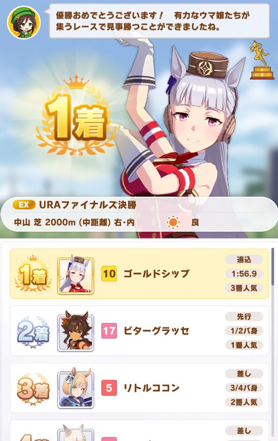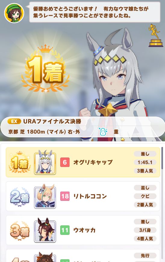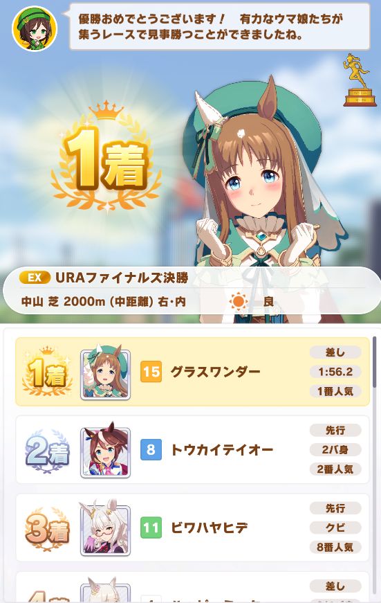 案の定、URA決勝で2コンしたものの3度目で接戦を制してなんとか勝利。