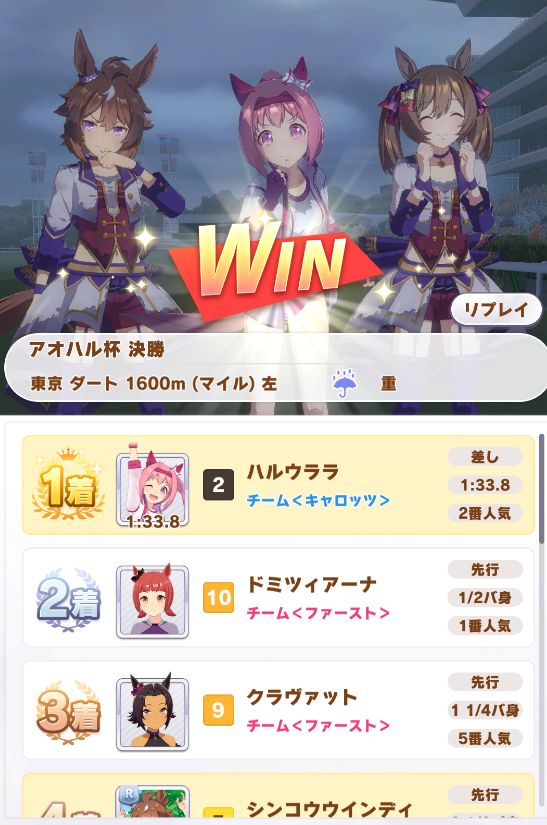アオハル杯決勝はビター、リトルに屈したものの、他は勝てて優勝