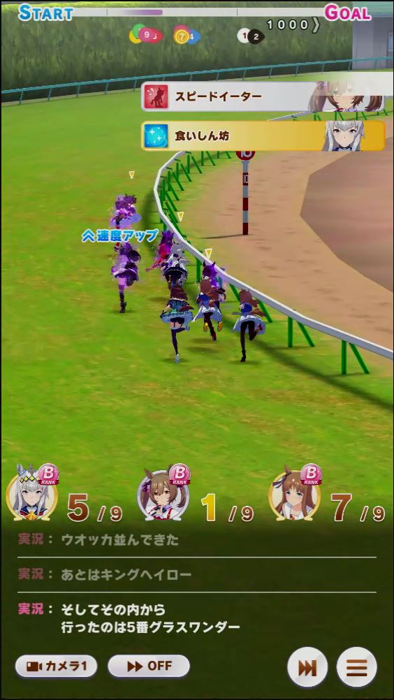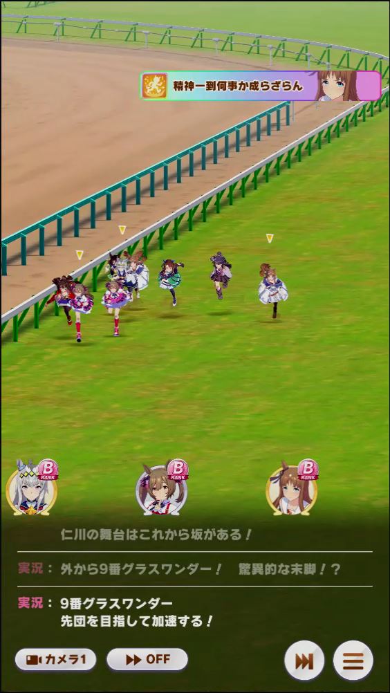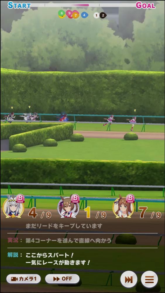 差しが4人いるので、そのグループの中で先頭を走れば6番手でアナボリックを発動出来るチャンスがある。とはいえスタミナ回復の無いグラスが最後まで持つのか。