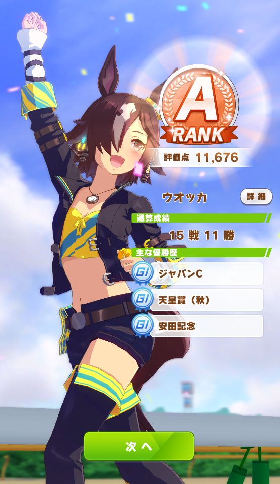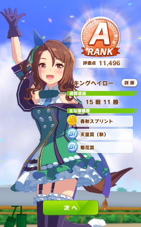 ファン数12万を超えないまま12月になってしまったことを忘れてて固有スキルはレベル4止まりだったのが悔やまれる。