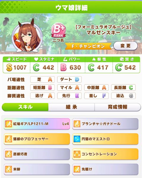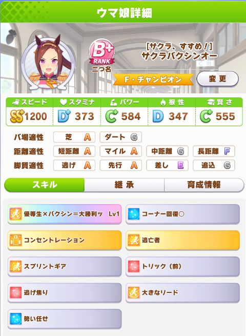育成初めて早々に位置取り系スキルが全然取れない事に気づき、ひとまずテンポアップだけ取ってあとは祈るのみ