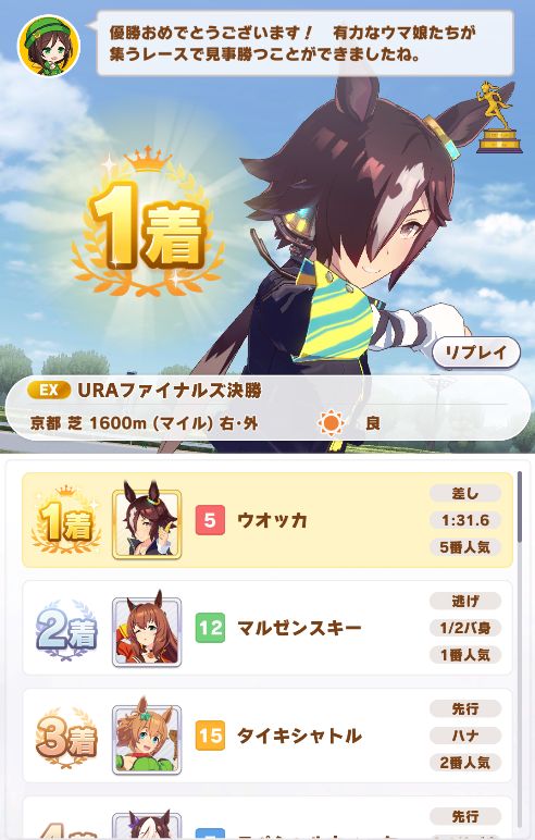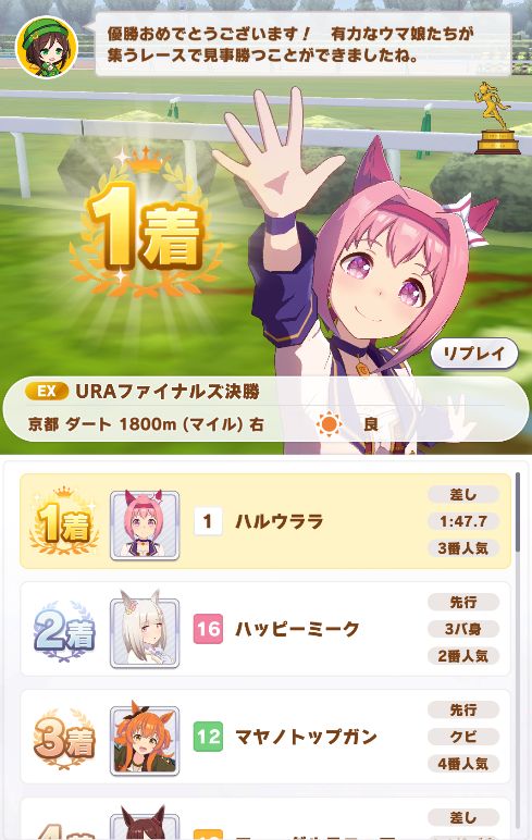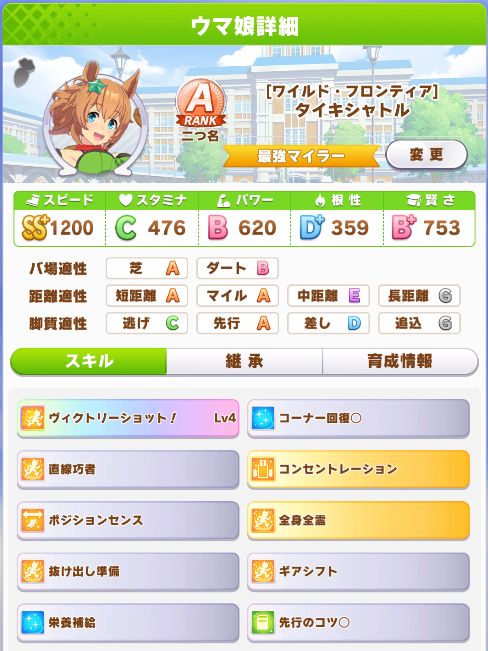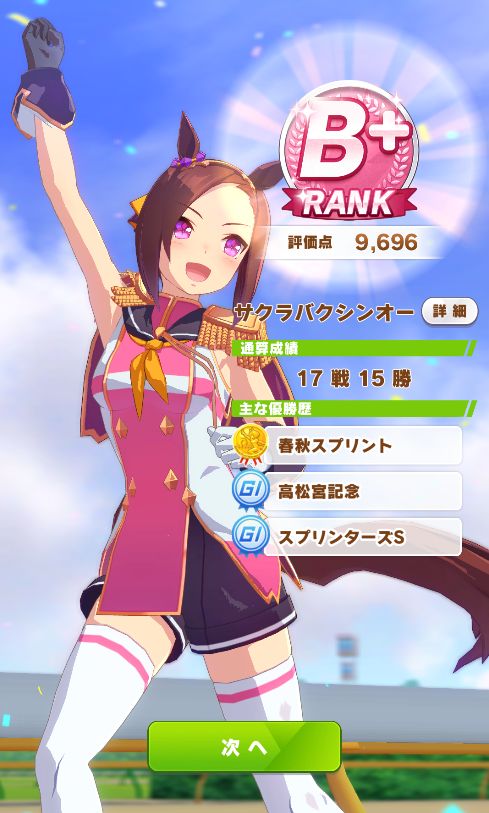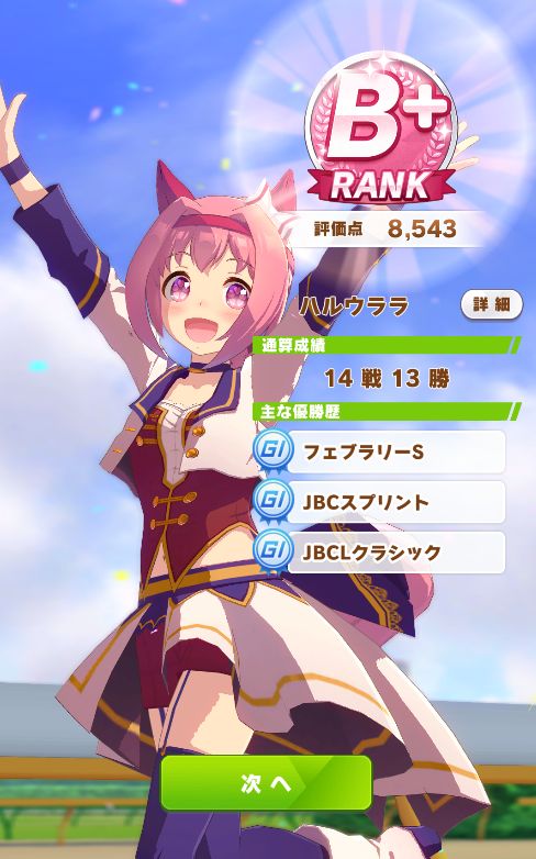 他にステータスを割り振れた為か、NHKマイルで3着以外は全勝ノーコンクリアで初のAランク