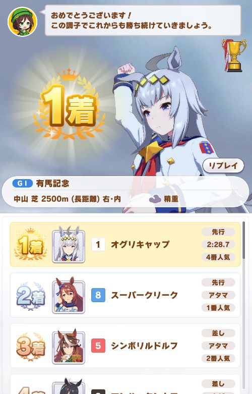 その後は宝塚も含めて一発クリアで無事育成達成