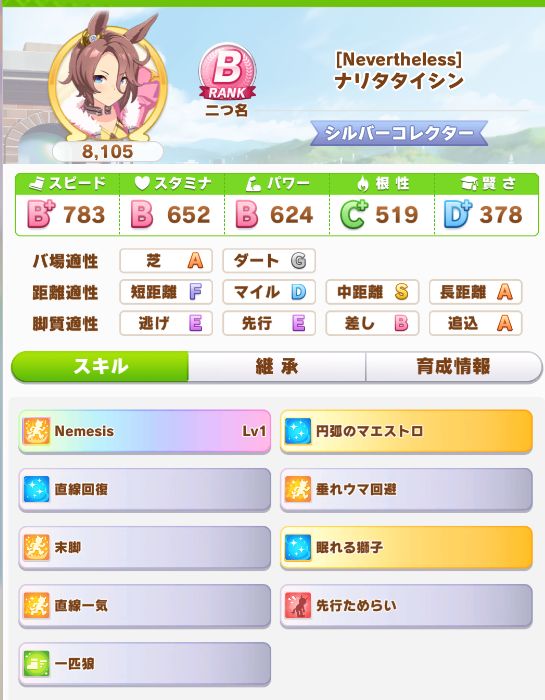 スコーピオ杯でタイキの固有が強いという話を聞いて中距離適正をAに上げられそうなので育成