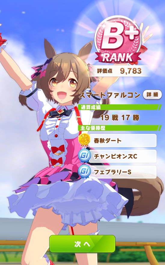 因子はそこそこ。ファン数の少ないレースを走る必要があった為、ステータスが上げづらい印象