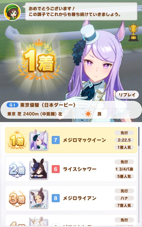 初育成でクラシック・春シニア三冠達成のAランク