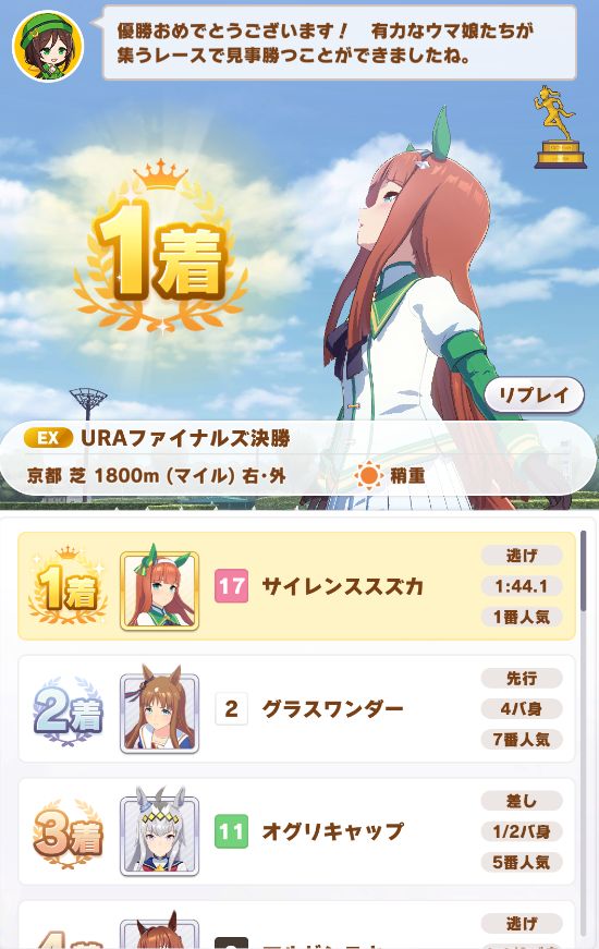 なお、URA決勝で久し振りにモブ娘ちゃんが上位入賞してたもよう(自分の場合はバクシンで初優勝したとき以来?)