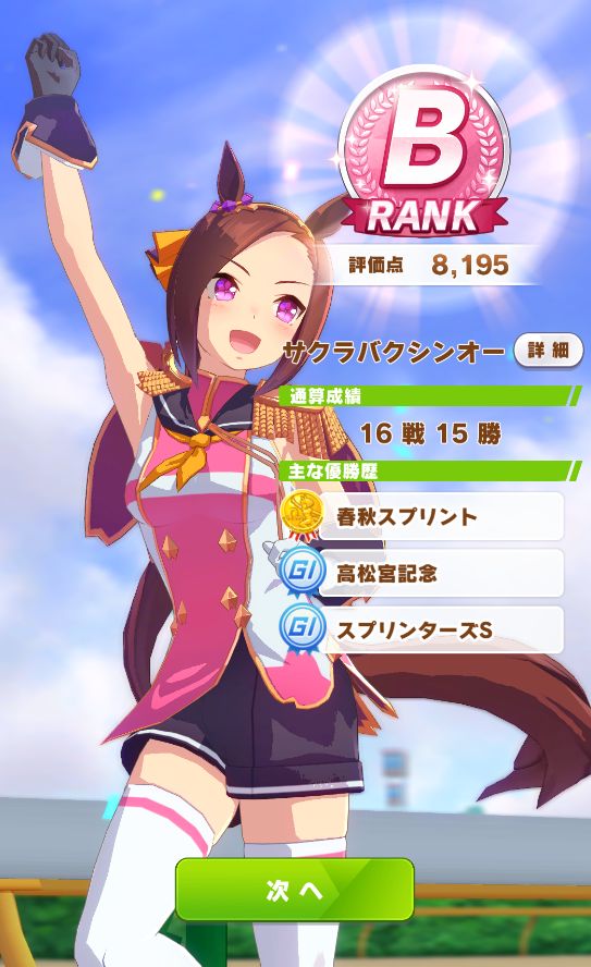 バクシンは不調・出遅れもスキルが上手いこと出て4勝