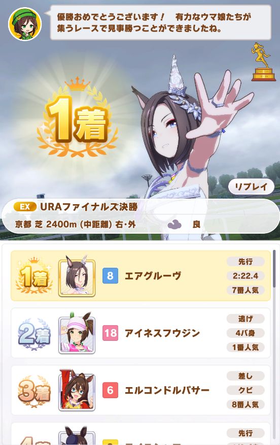 寝不足、偏頭痛引くわURA決勝で1コンするわの展開ながら