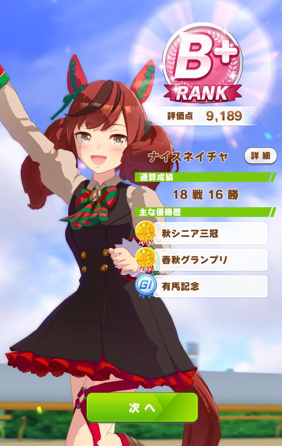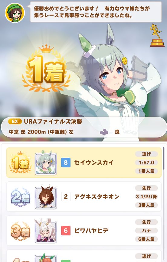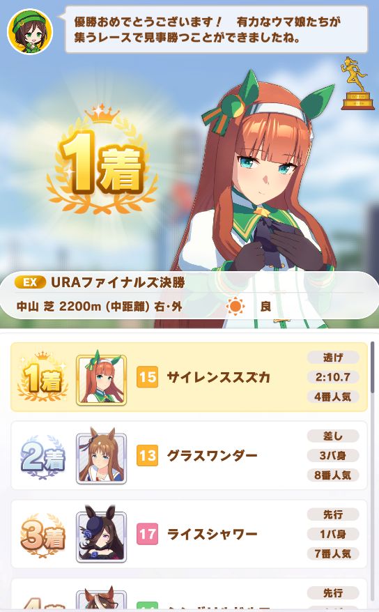 クラシック級で2着が続いてしまい固有スキルが上げられず苦戦したが