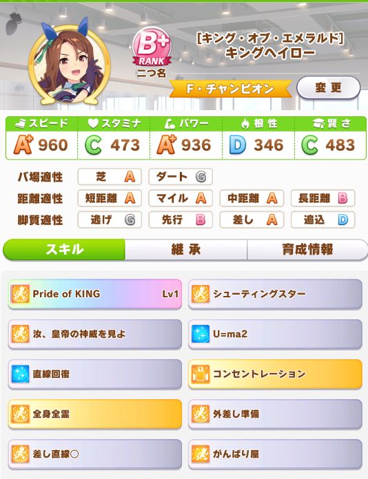 ただ、レース出走数の少なさや惜敗も多かった為にスキルポイントが足りず