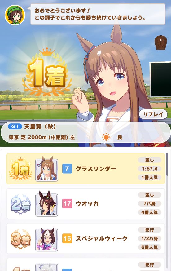レースはゴルシが唯一、ゲート難から何まで全てのスキルを披露しての勝利。