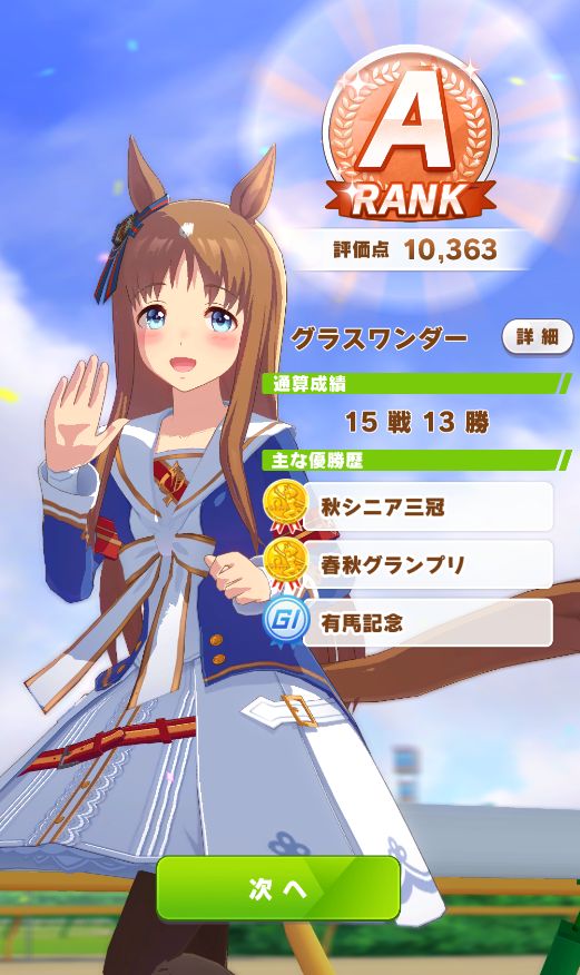 無事Bランクで育成完了。